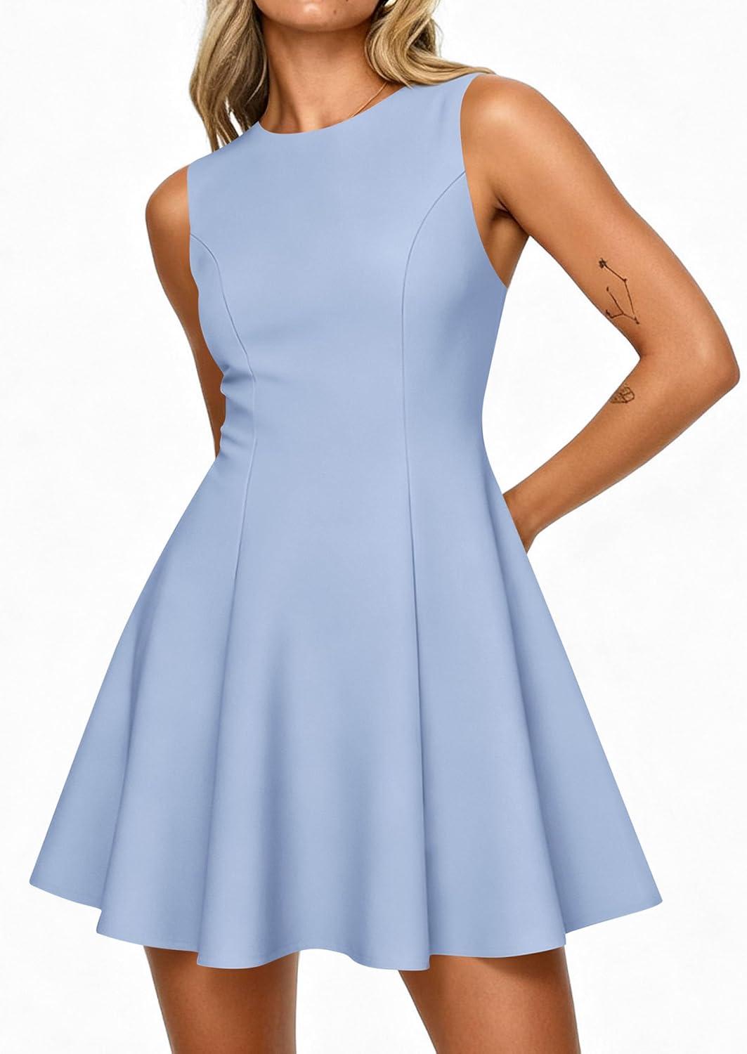 PRETTYGARDEN Summer Dresses for Women 2026 Elegant Sleeveless Boat Neck A Line Spring Formal Cocktail Party Mini Dress(Light Blue)