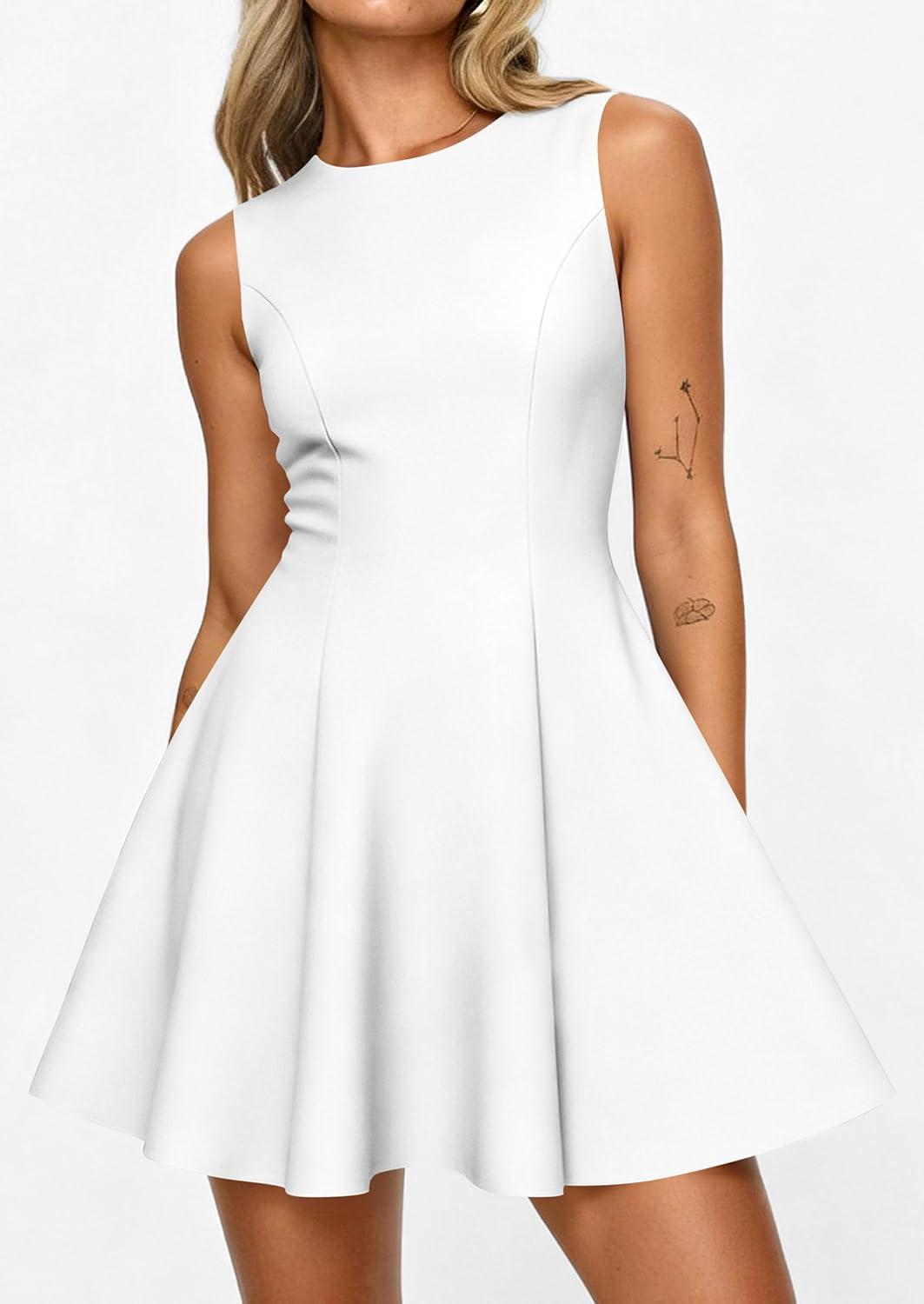 PRETTYGARDEN Summer Dresses for Women 2026 Elegant Sleeveless Boat Neck A Line Spring Formal Cocktail Party Mini Dress(White)