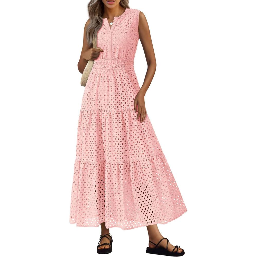Be the first to review “PRETTYGARDEN Summer Dresses for Women 2026 Sundresses Sleeveless V Neck Eyelet A Line Flowy Beach Vacation Spring Maxi Dress(Pink)” Cancel reply