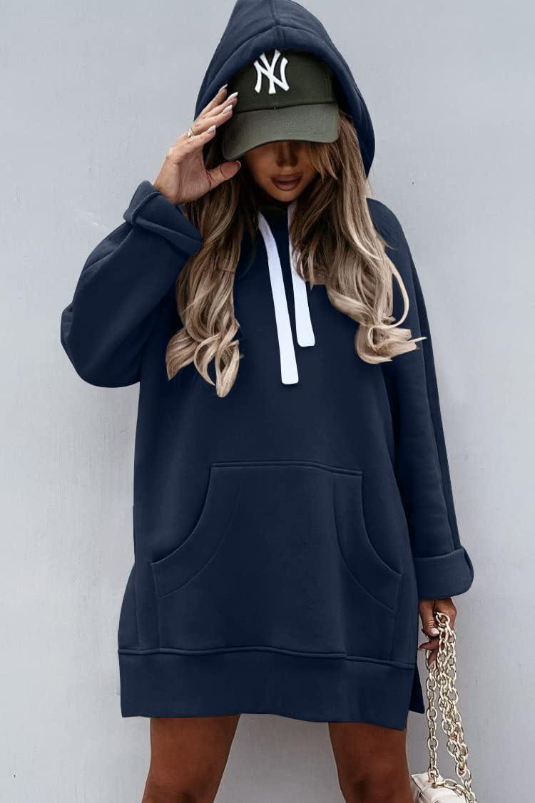PRETTYGARDEN Sweatshirt for Women 2025 Fall Oversized Pullover Long Sleeve Casual Hoodie Dress Kangaroo Pocket Winter Clothes(Navy)