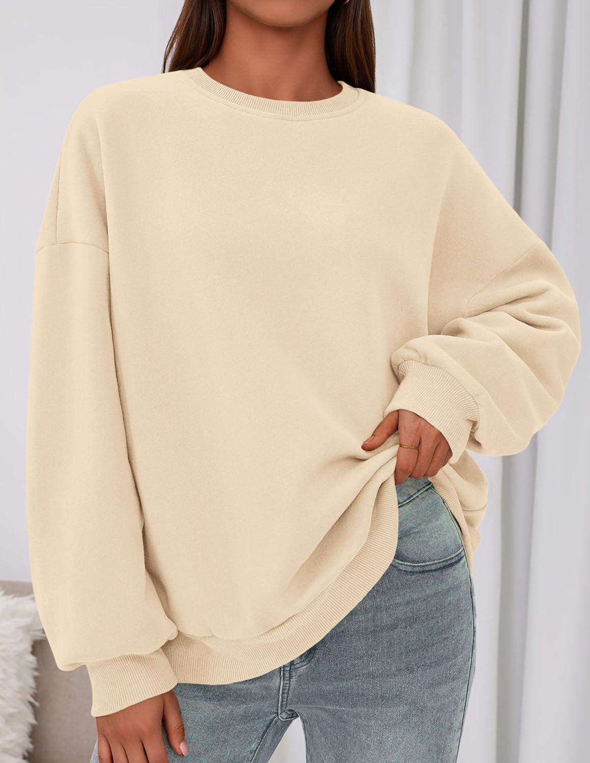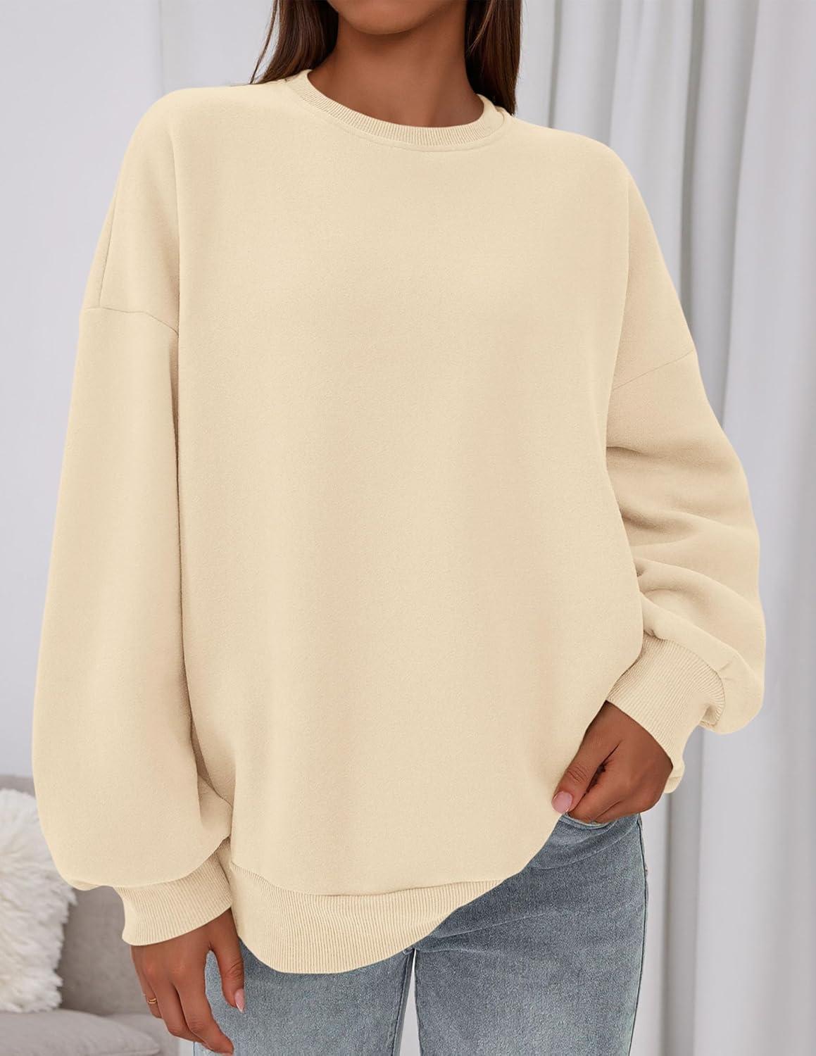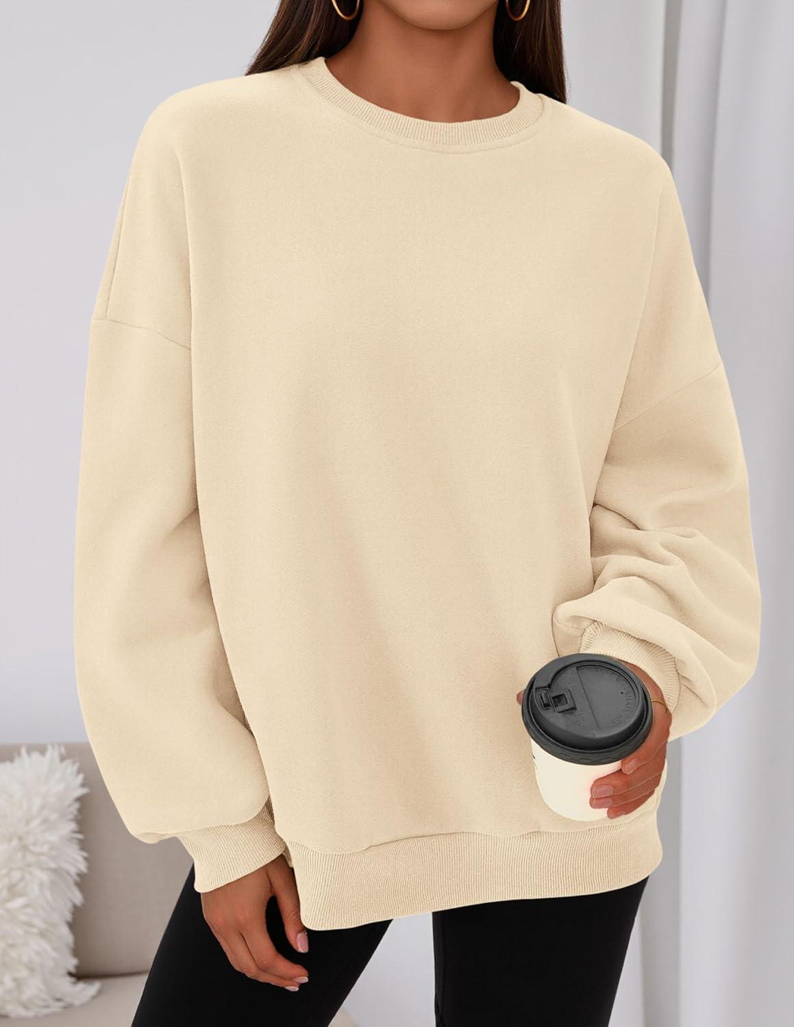PRETTYGARDEN Sweatshirt for Women Oversized Crewneck Long Sleeve Pullover Fleece Top 2025 Fall Winter Fashion Outfits Clothes(Beige)