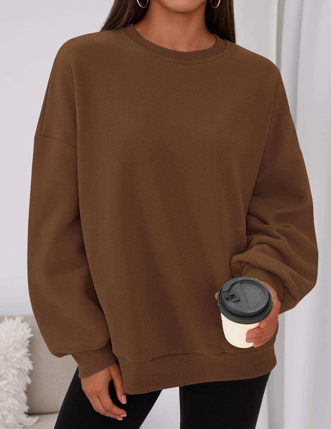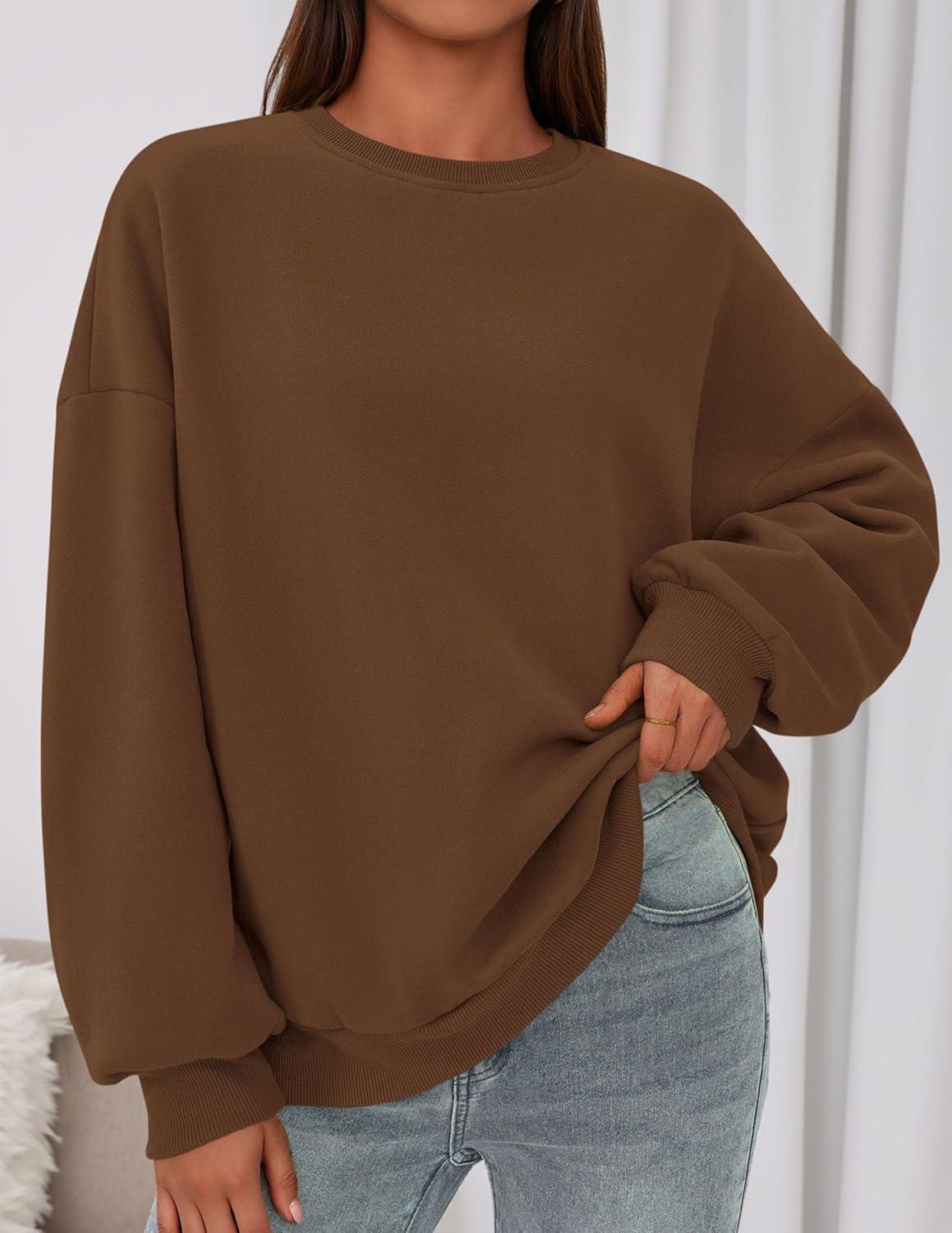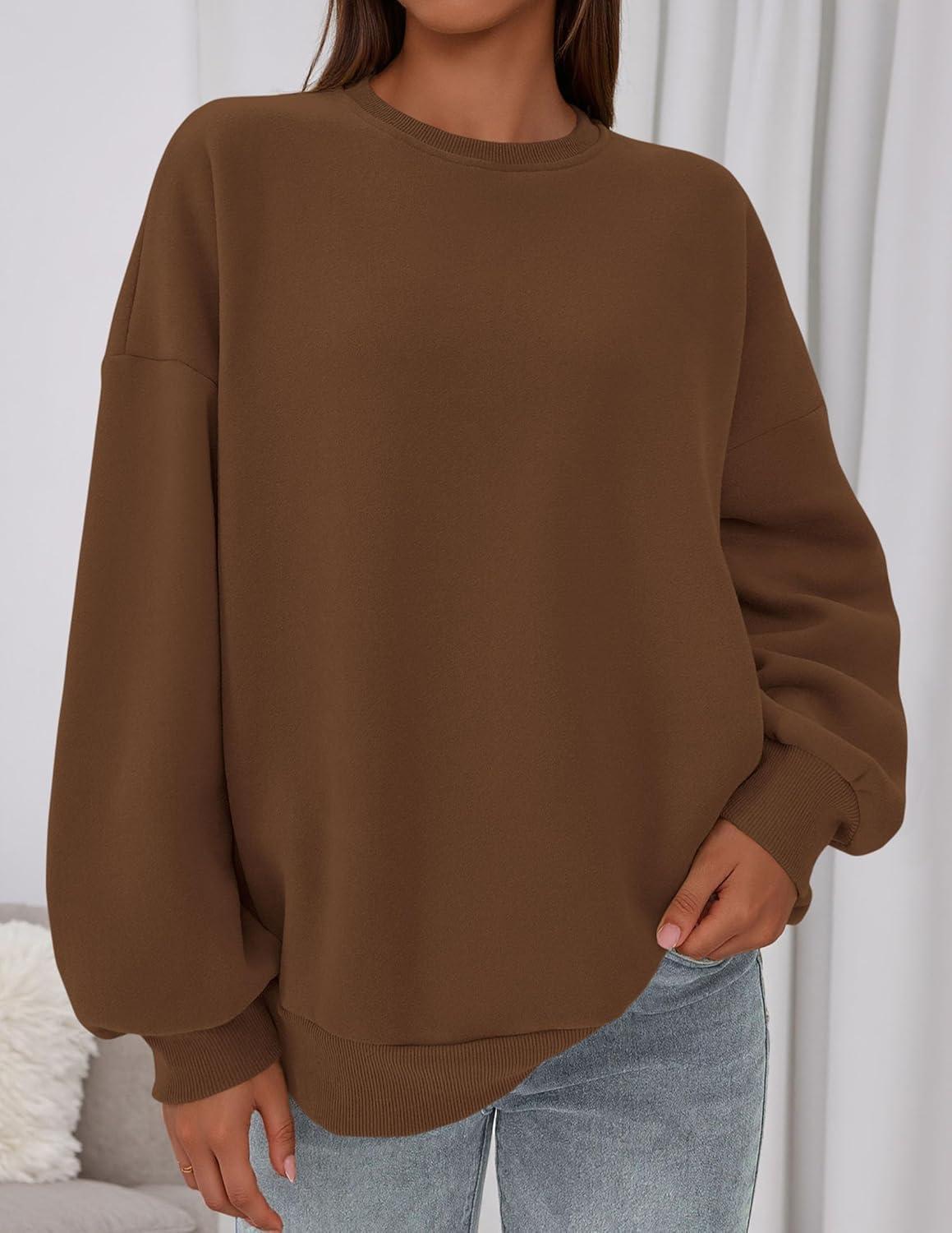 PRETTYGARDEN Sweatshirt for Women Oversized Crewneck Long Sleeve Pullover Fleece Top 2025 Fall Winter Fashion Outfits Clothes(Brown)