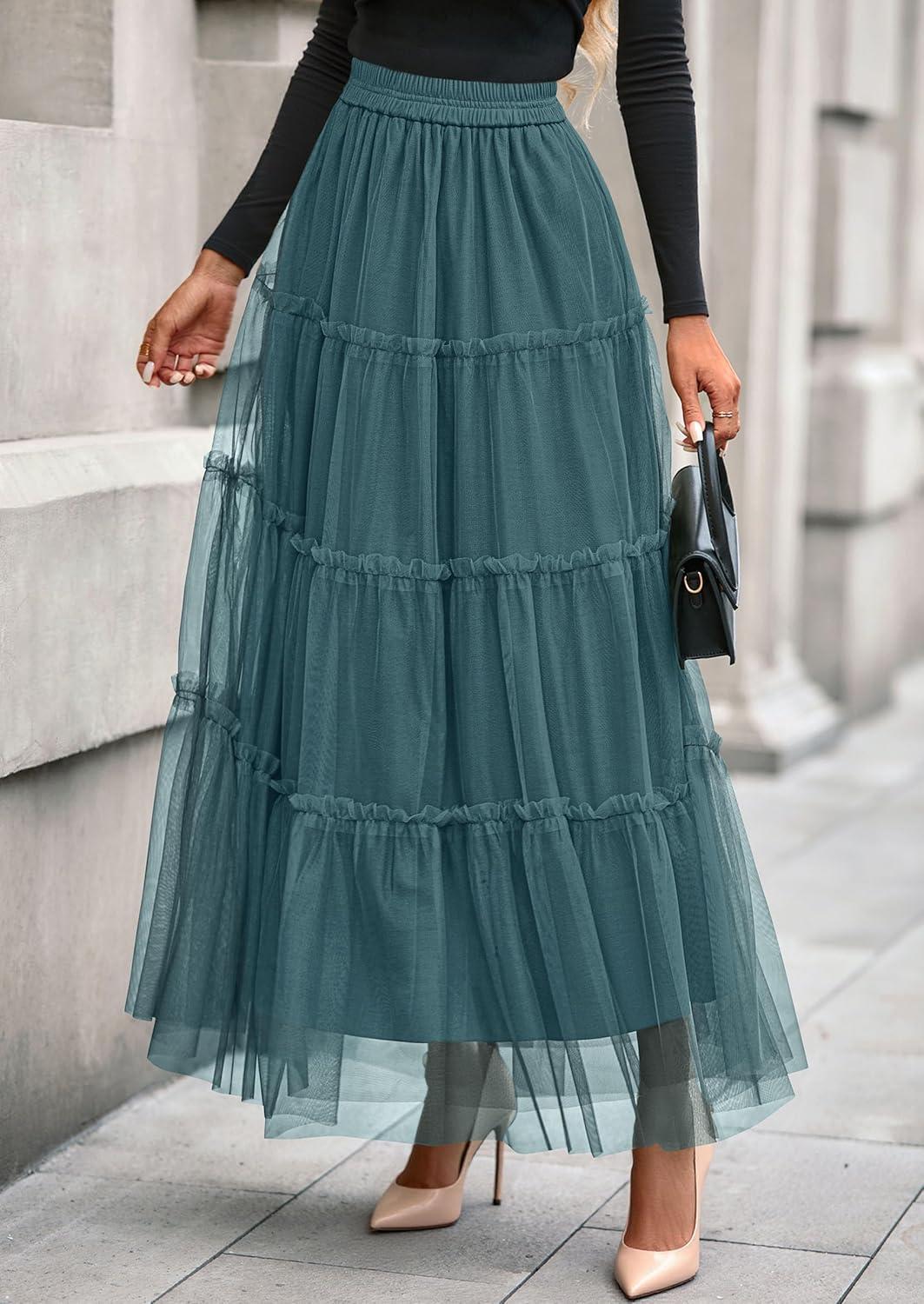 Our clearance event features the best deals on PRETTYGARDEN Tulle Skirts for Women 2025 Fall Fashion Elastic High Waisted Tiered Flowy A-Line Casual Maxi Long Skirt(Sage Green) and accessories. Shop now!