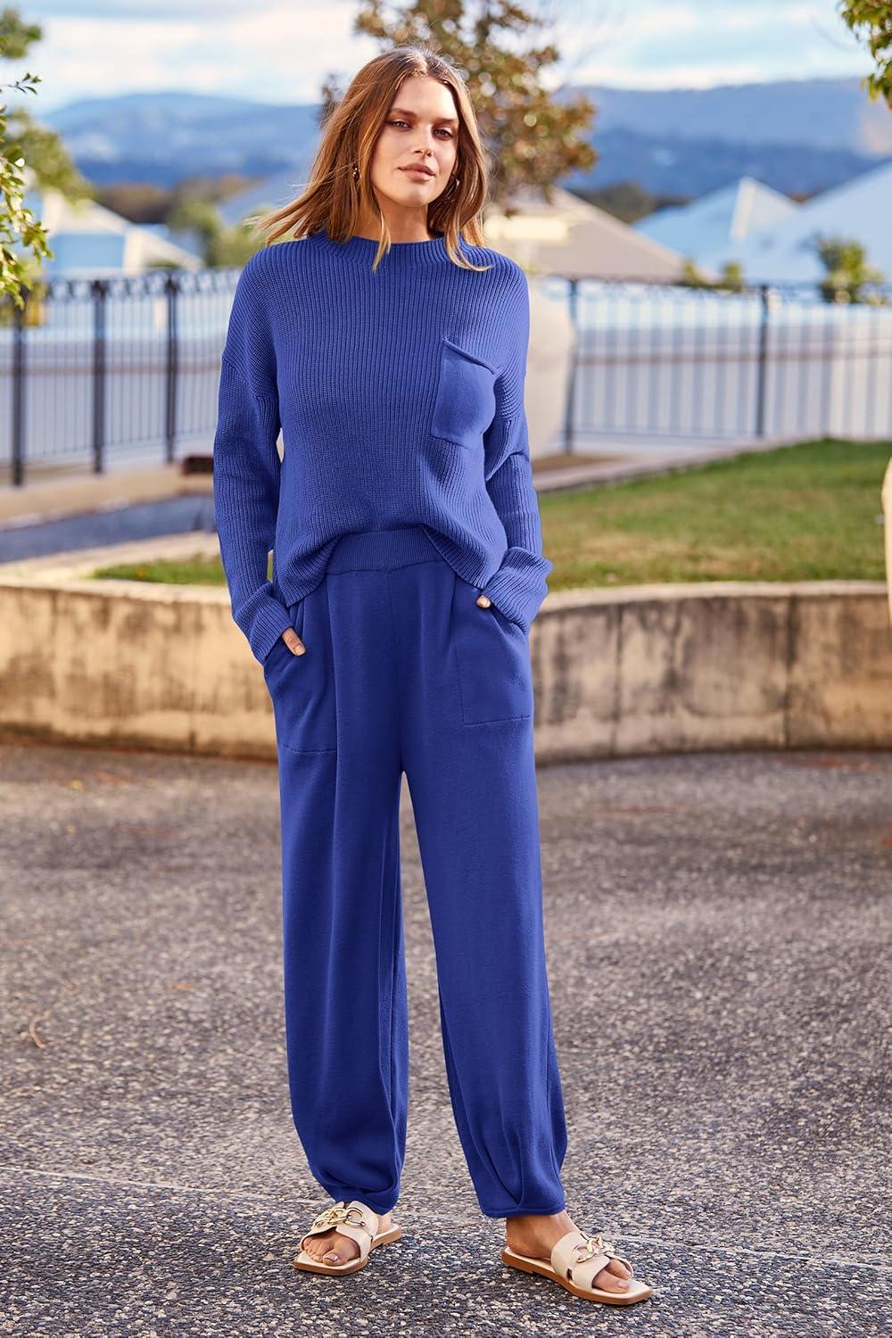 PRETTYGARDEN Two Piece Sets for Women 2025 Pullover Sweater High Waisted Sweatpants Tracksuit Lounge Set Fall Winter Outfits(Blue)