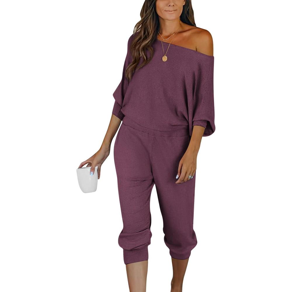 Be the first to review “PRETTYGARDEN Two Piece Sets for Women Fall 2025 Ribbed Knit Off Shoulder Tops Lounge Pants Tracksuit Fashion Clothing(Purple Red)”