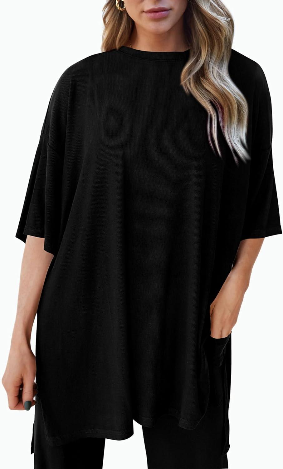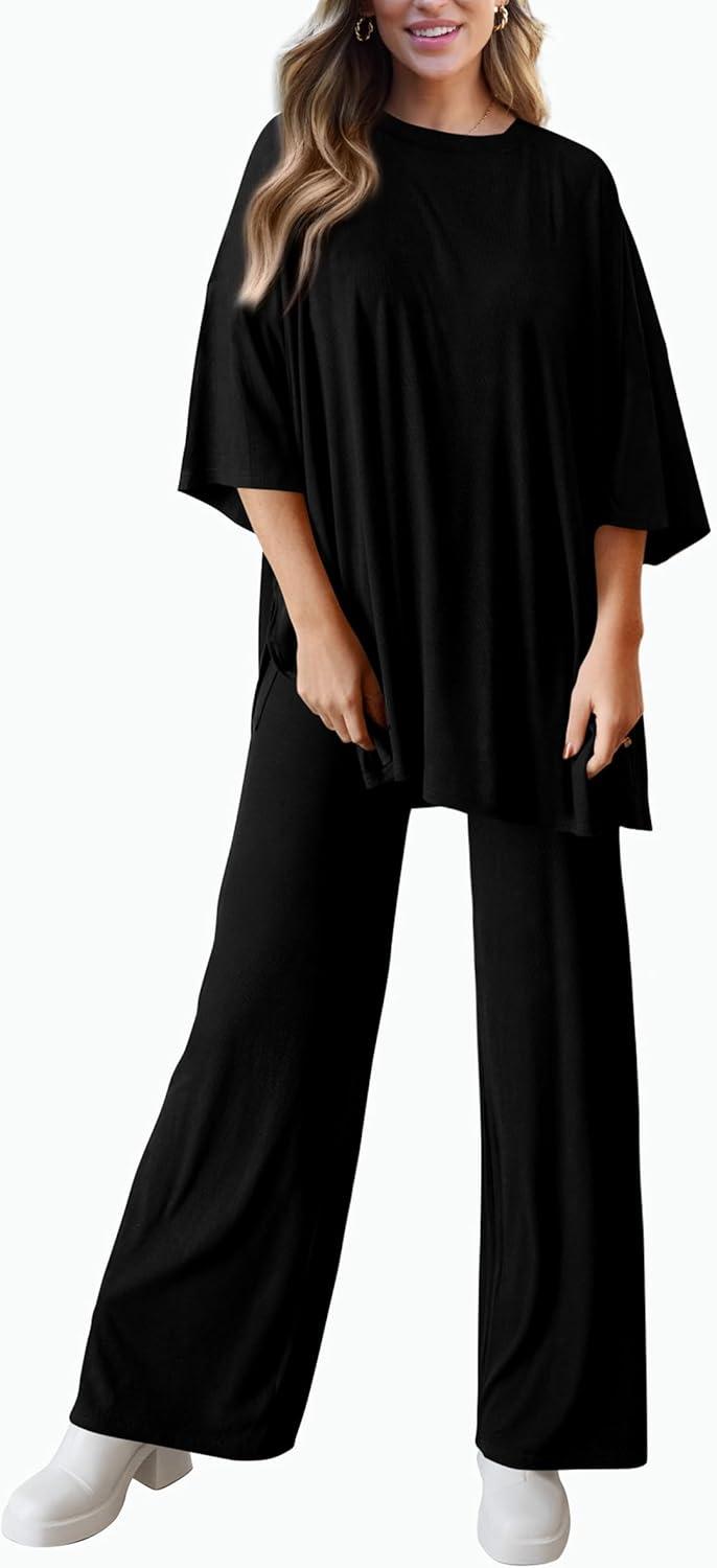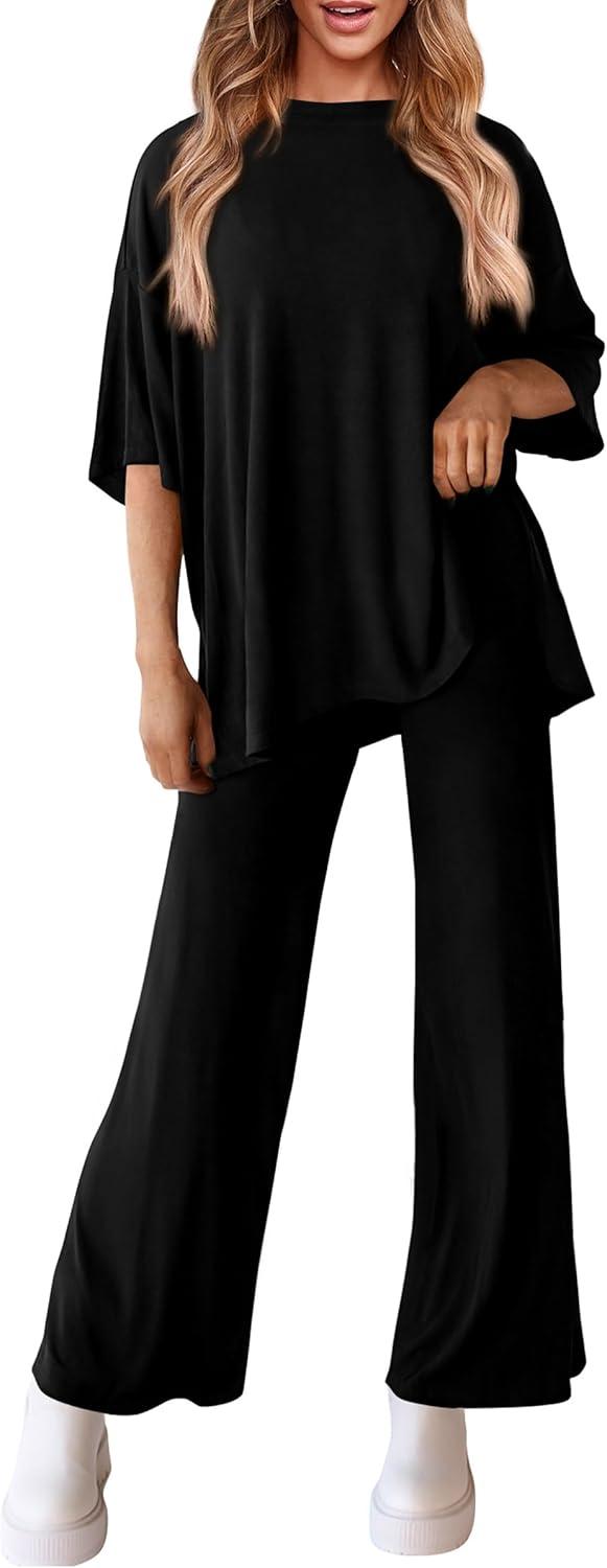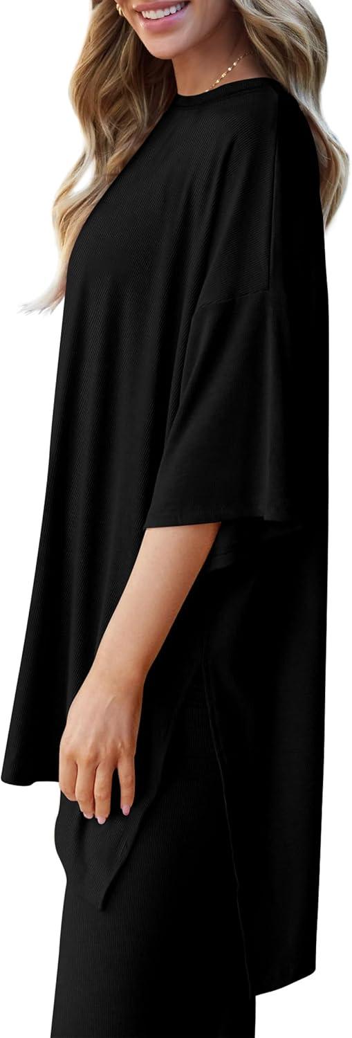PRETTYGARDEN Two Piece Sets For Women Summer Fashion Lounge Matching Set 2025 Travel Vacation Airport Outfits Clothing(Black)