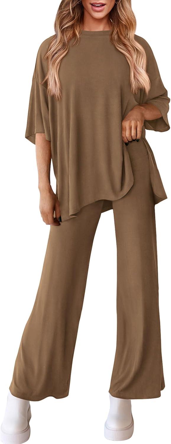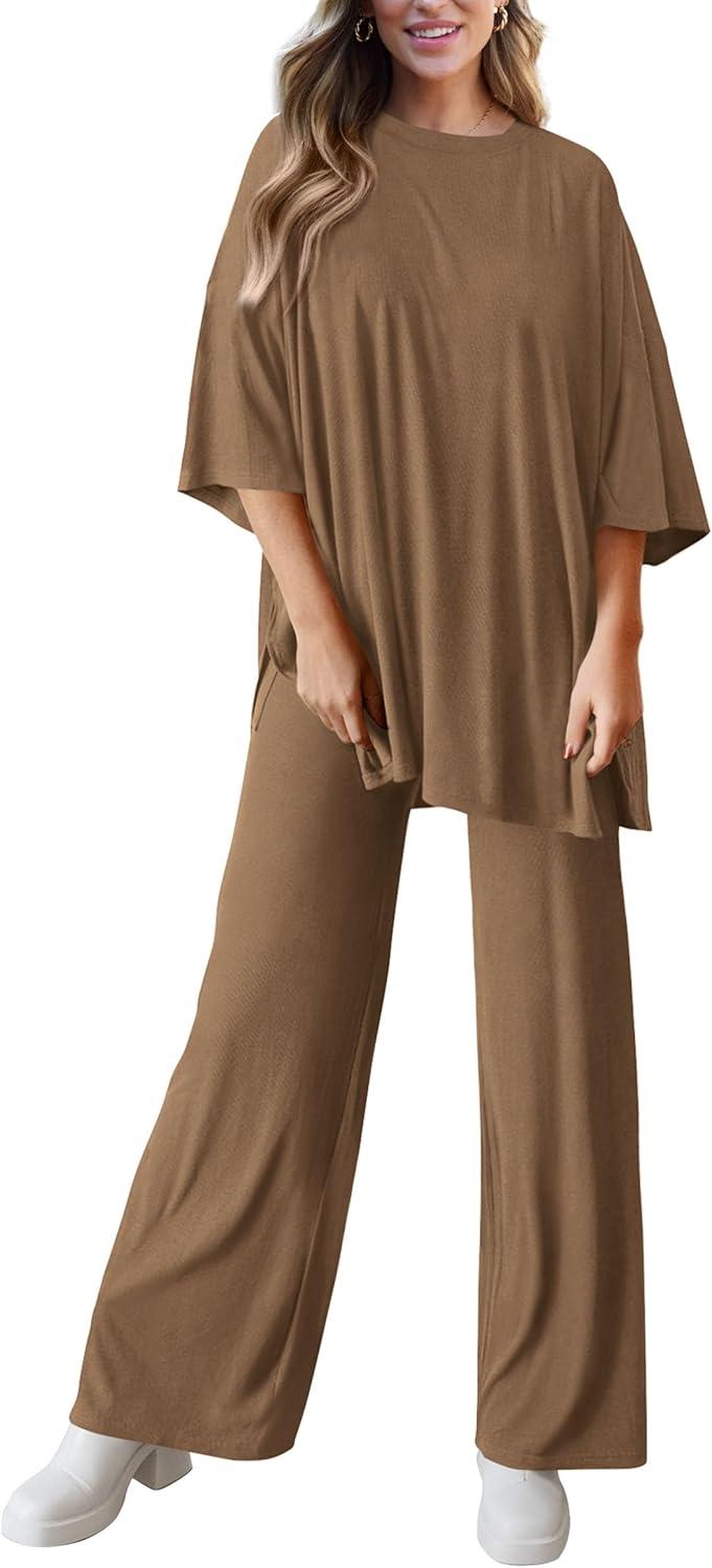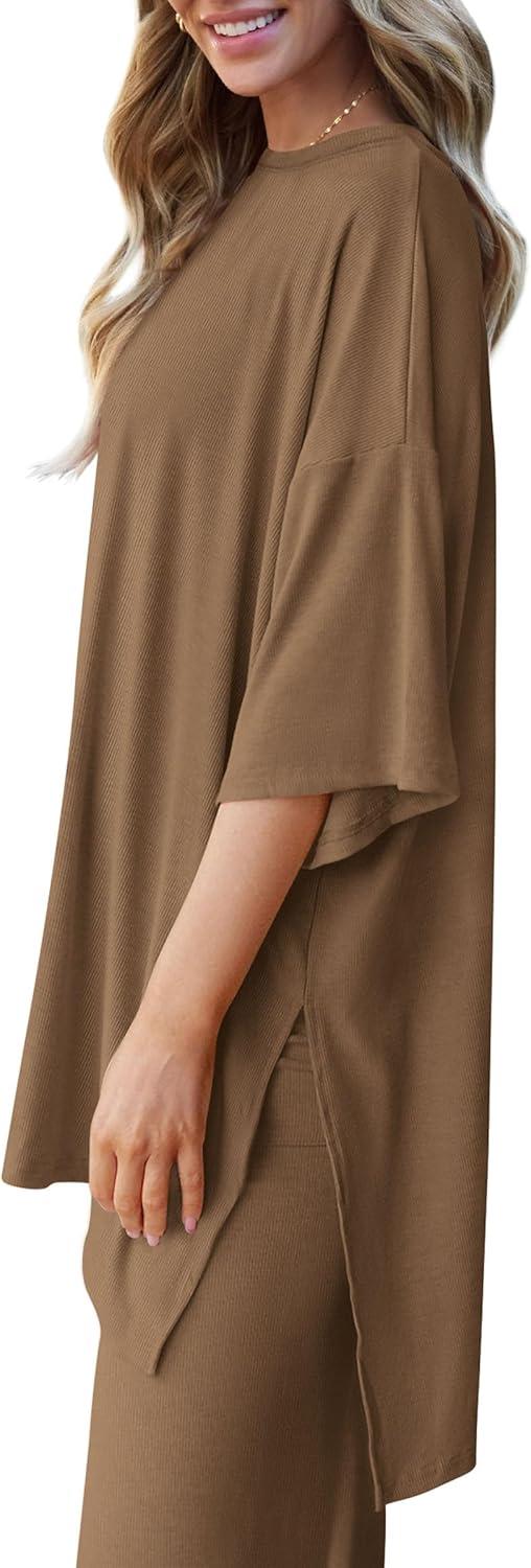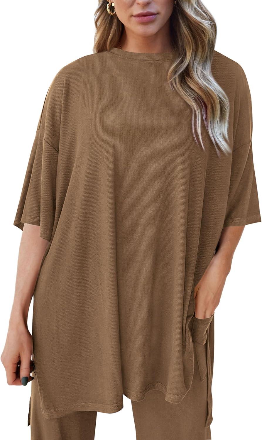 PRETTYGARDEN Two Piece Sets For Women Summer Fashion Lounge Matching Set 2025 Travel Vacation Airport Outfits Clothing(Khaki)
