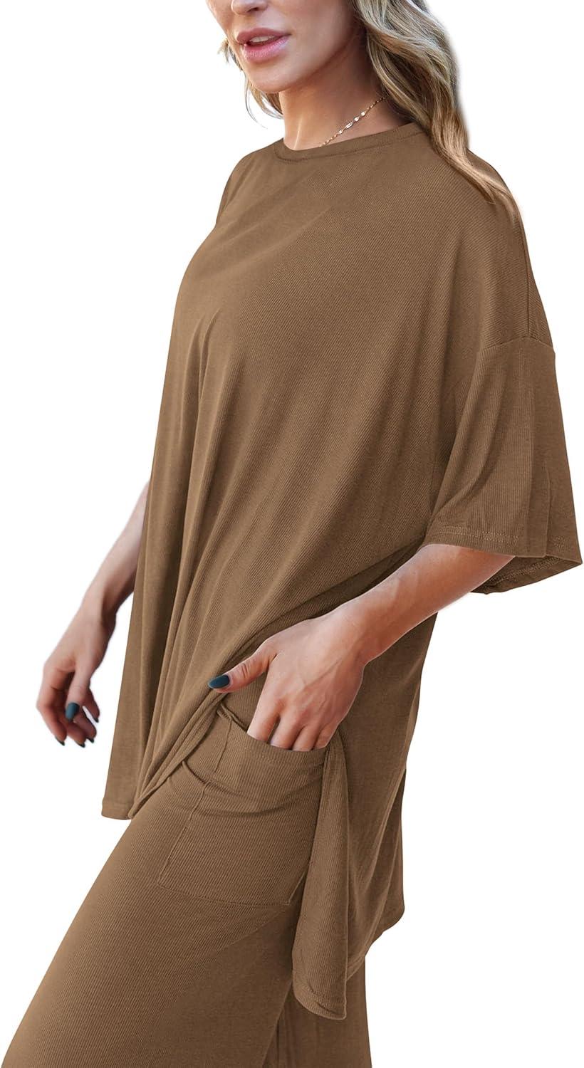 PRETTYGARDEN Two Piece Sets For Women Summer Fashion Lounge Matching Set 2025 Travel Vacation Airport Outfits Clothing(Brick Red)