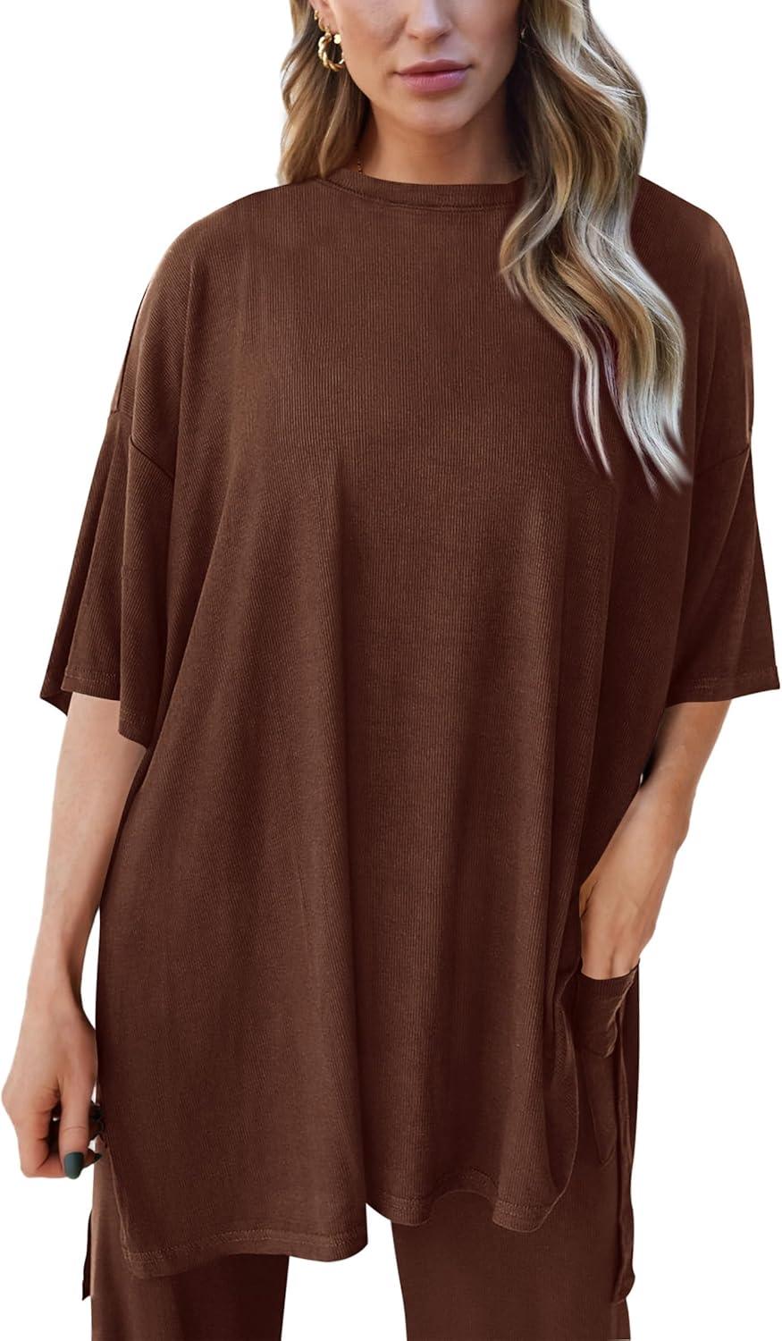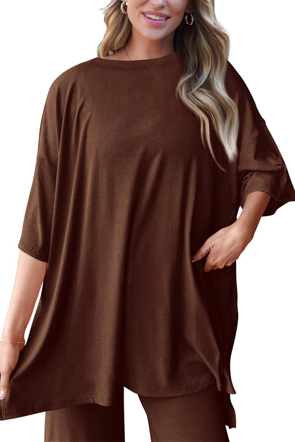 PRETTYGARDEN Two Piece Sets For Women Summer Fashion Lounge Matching Set 2025 Travel Vacation Airport Outfits Clothing(Light Coffee)