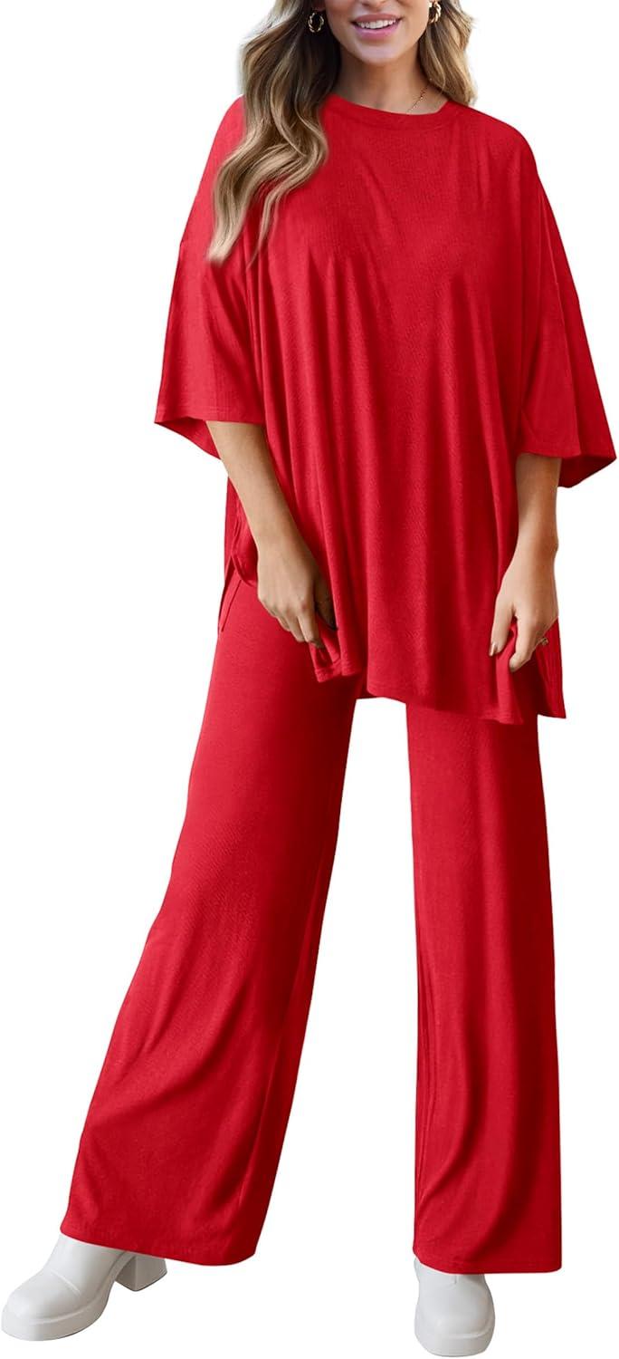 PRETTYGARDEN Two Piece Sets For Women Summer Fashion Lounge Matching Set 2025 Travel Vacation Airport Outfits Clothing(Red)