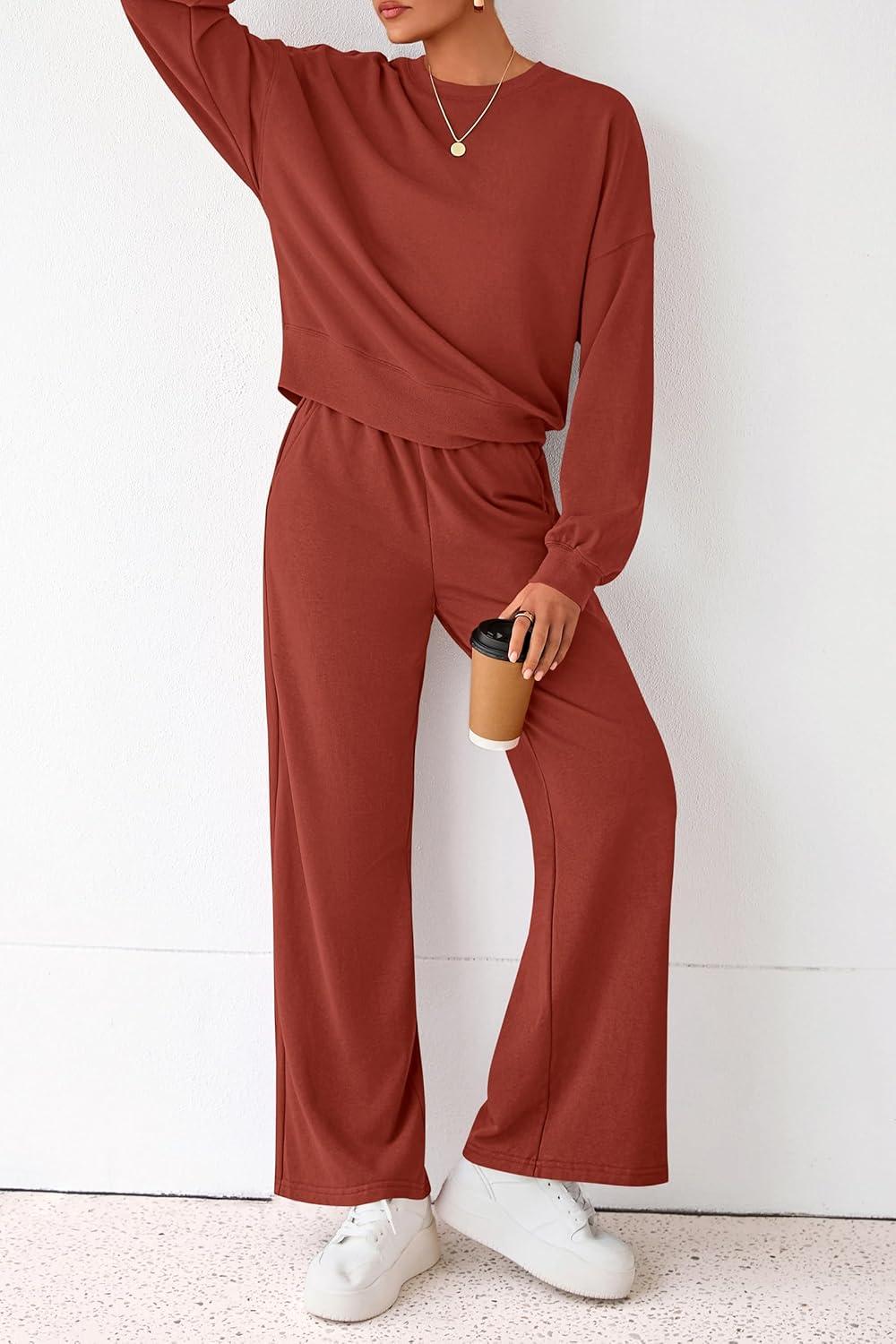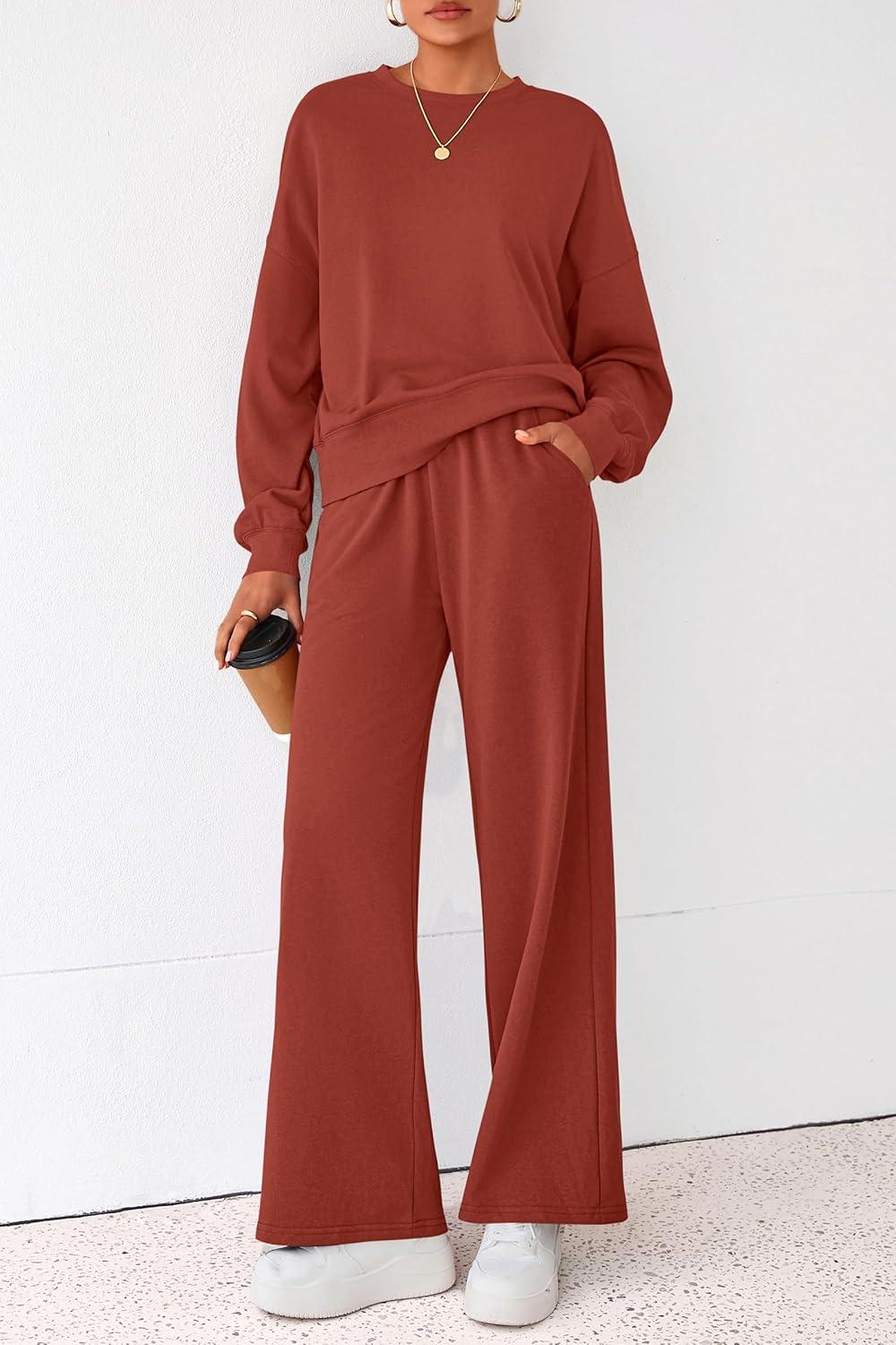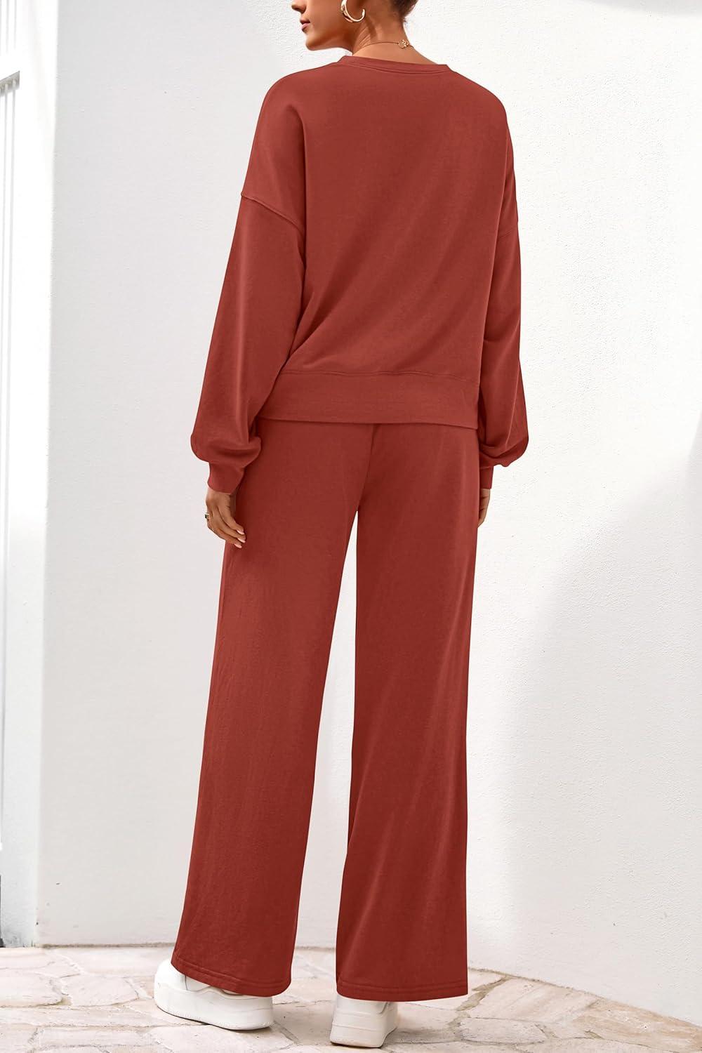 PRETTYGARDEN Women 2 Piece Outfits 2025 Fall Sweatsuits Crewneck Sweatshirt Wide Leg Sweatpants Lounge Sets Tracksuit(Brick Red)