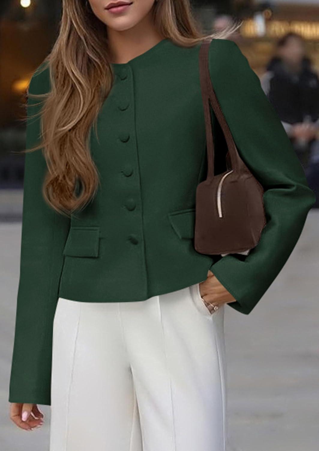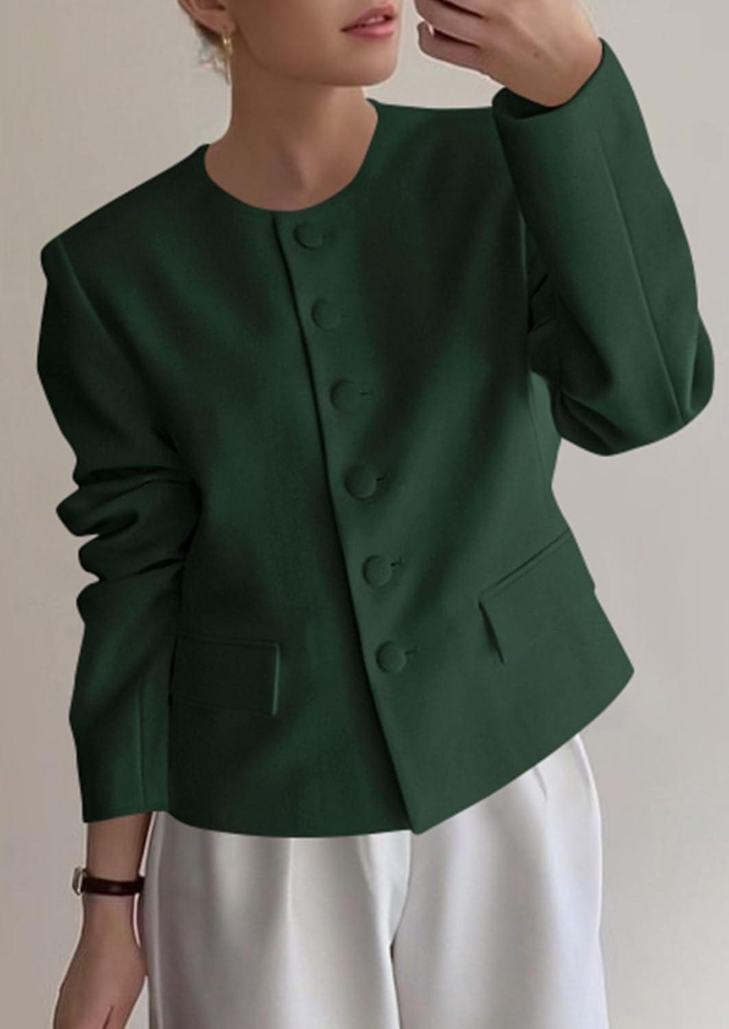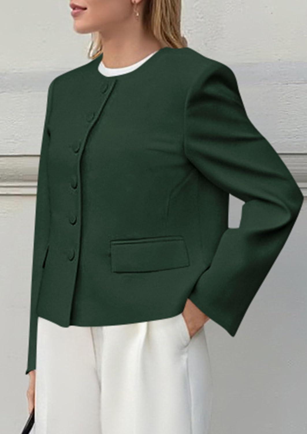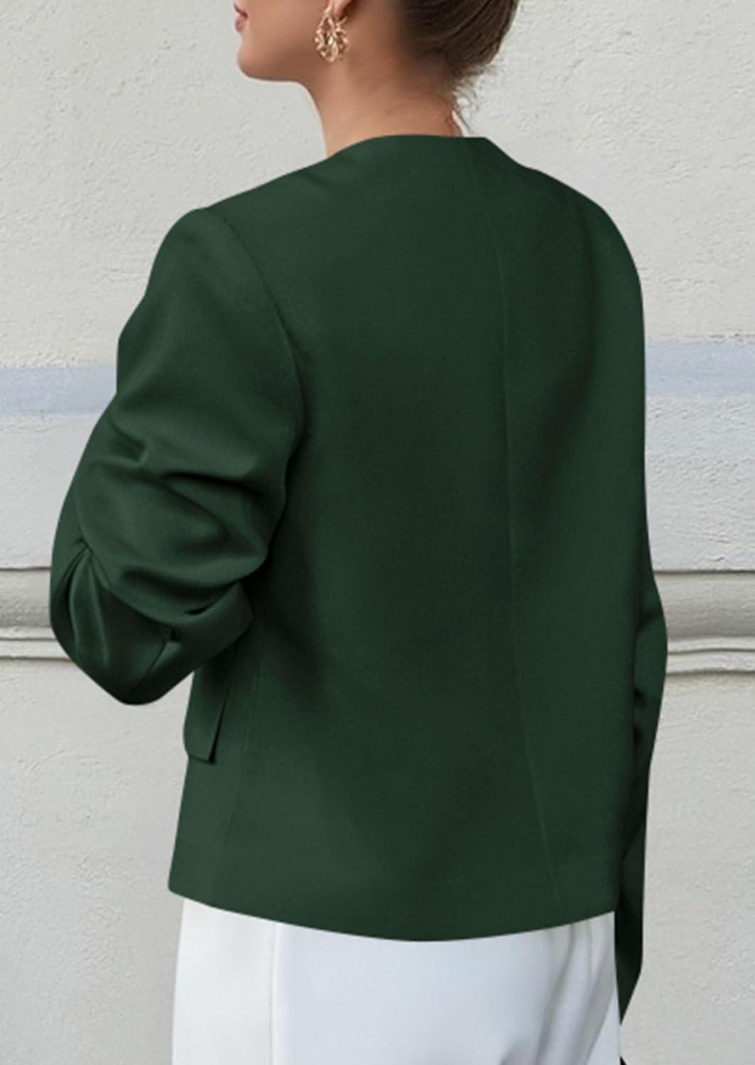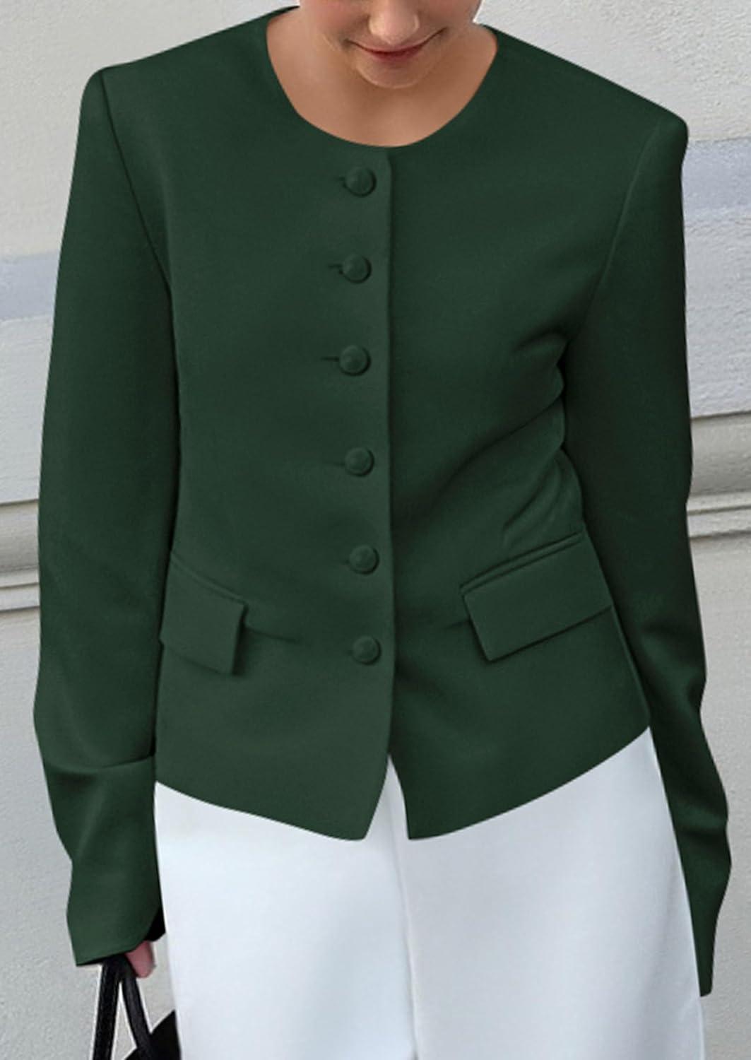 imagePRETTYGARDEN Women Blazers Business Casual Outfits 2025 Fall Fashion Long Sleeve Professional Office Work Suit Jacket ClothesDark Green