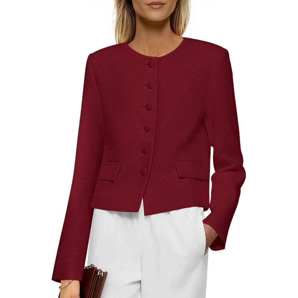 imagePRETTYGARDEN Women Blazers Business Casual Outfits 2025 Fall Fashion Long Sleeve Professional Office Work Suit Jacket ClothesWine Red