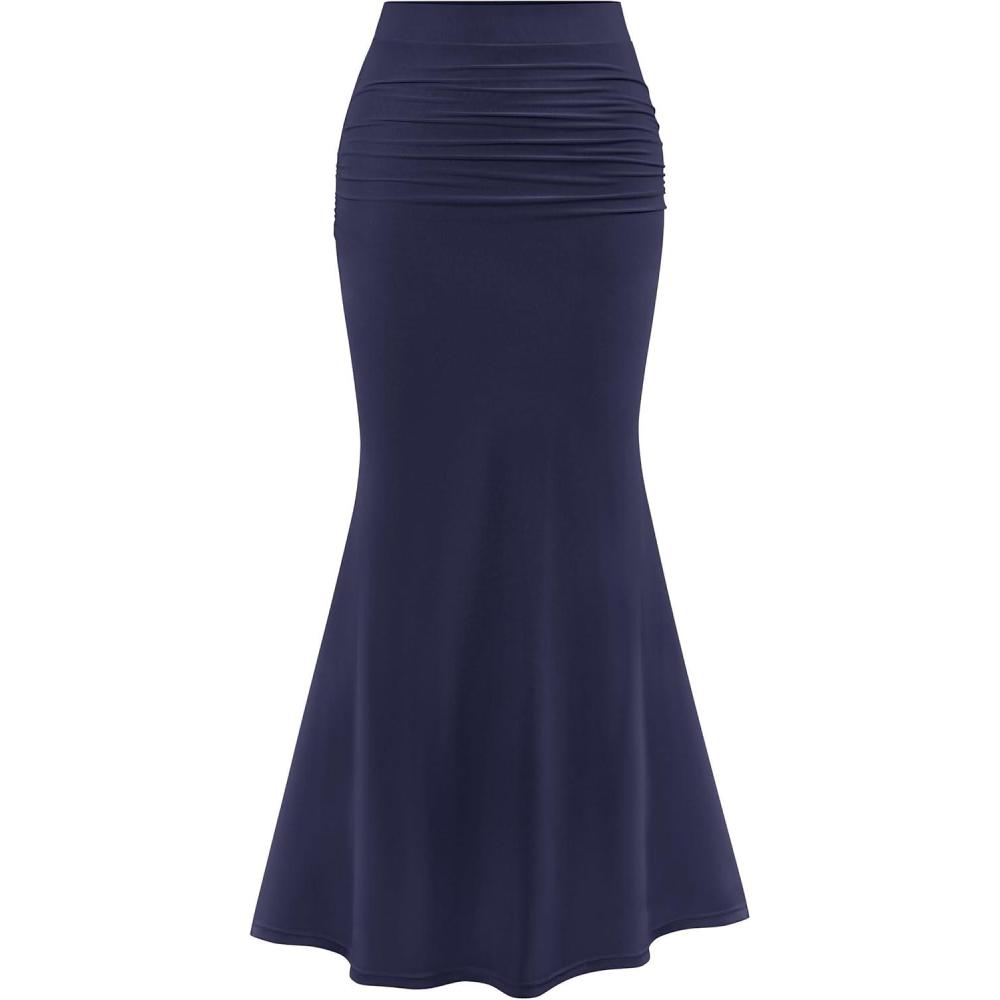 PRETTYGARDEN Women Bodycon Mermaid Skirt 2025 Spring Summer Casual Fitted Mesh High Waisted Ruched Maxi Long Going Out Outfit(Navy)