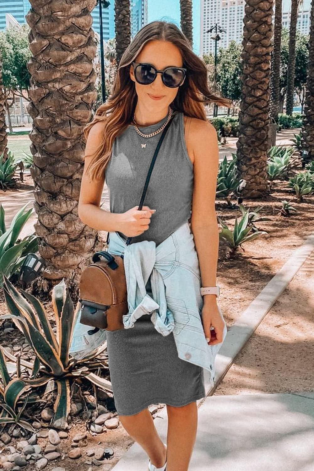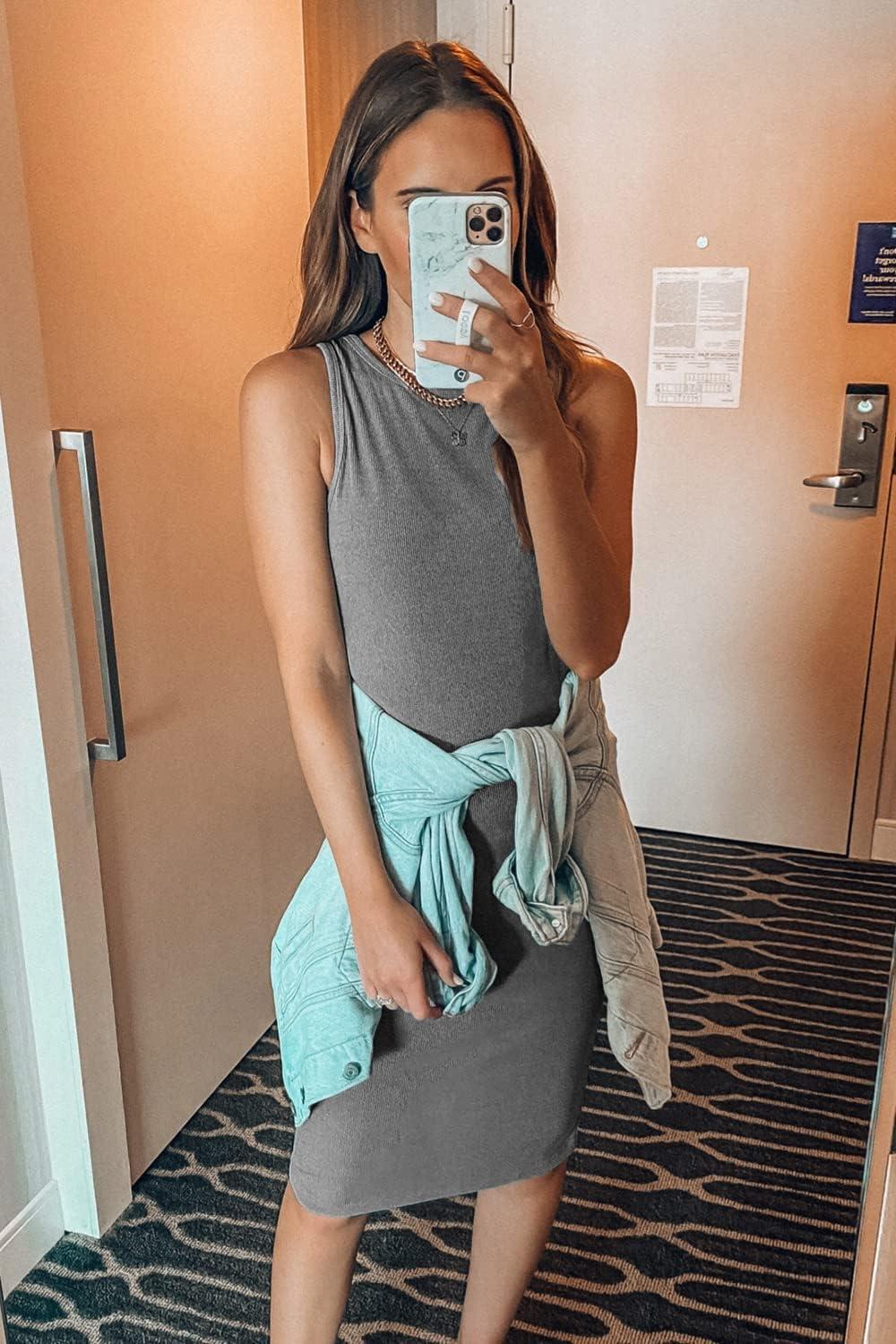 PRETTYGARDEN Women Bodycon Midi Dress 2025 Summer Spring Casual Vacation Sundress Fitted Sleeveless Tank Dresses(Grey)