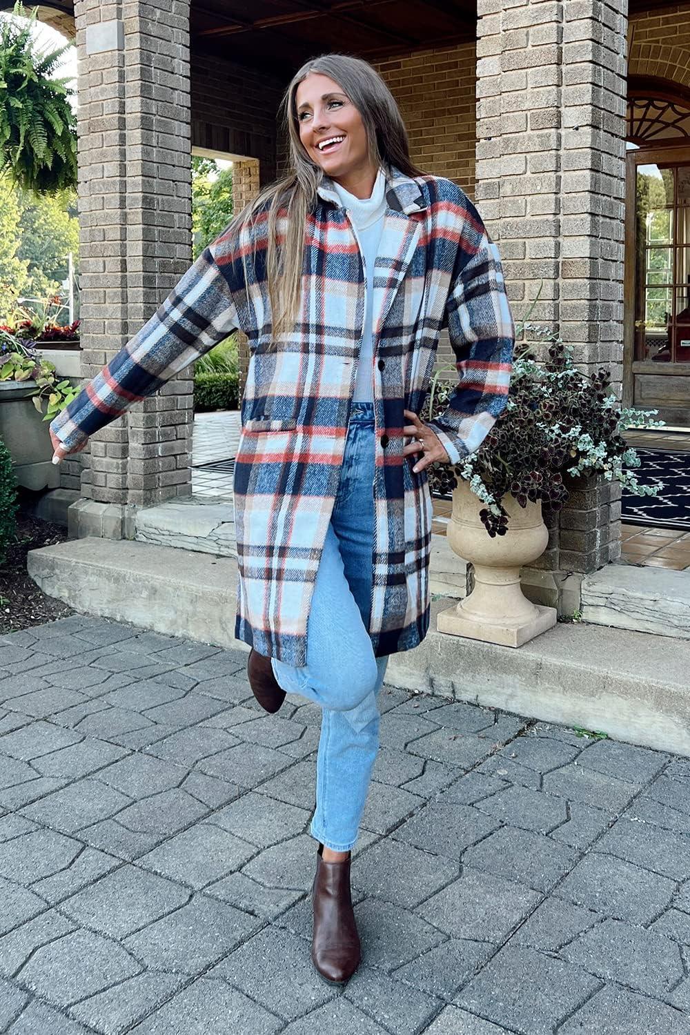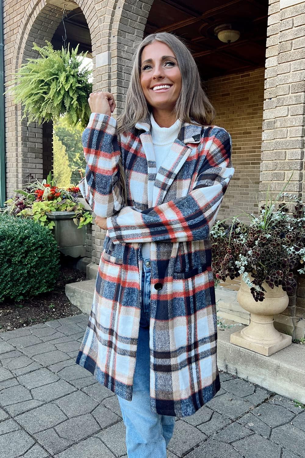 PRETTYGARDEN Women Plaid Shacket Jacket Trendy Fall Casual Button Wool Blend Tartan Trench Coat Winter Clothing with Pockets(Brown)