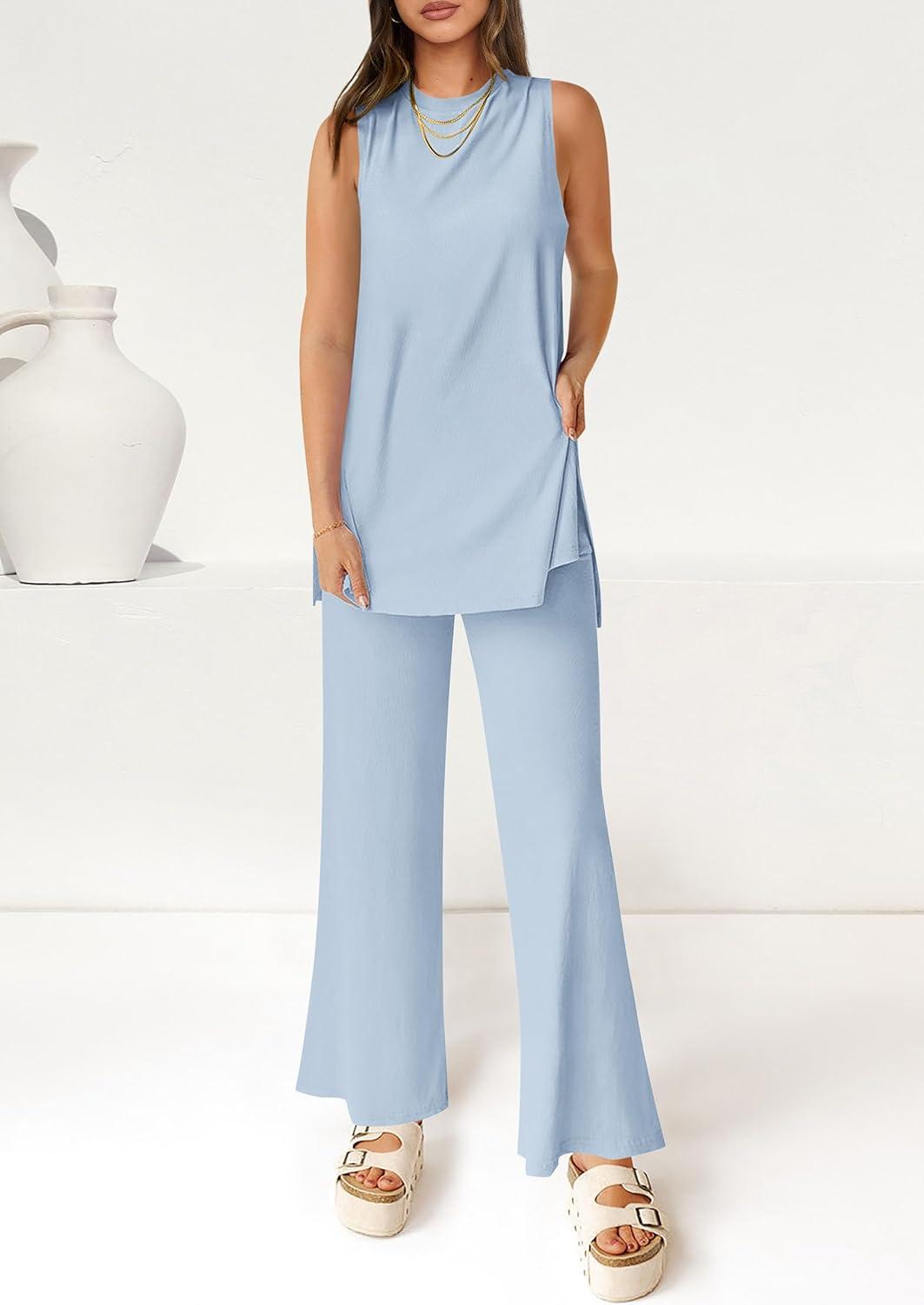 PRETTYGARDEN Women's 2 Piece Lounge Set 2025 Summer Casual Loose Tank Top Wide Leg Pants Matching Travel Outfits Tracksuit(Light Blue)