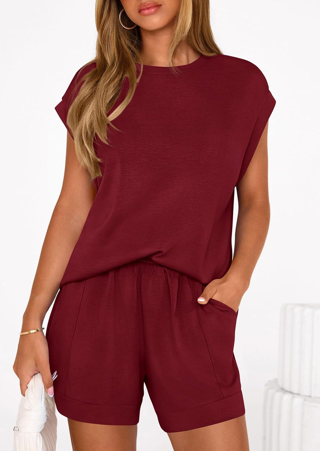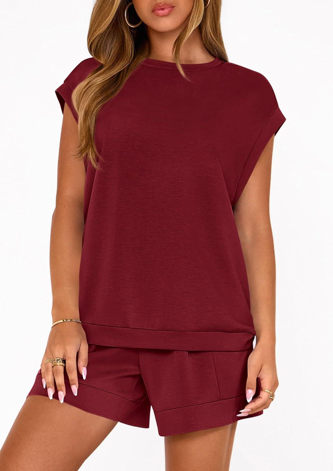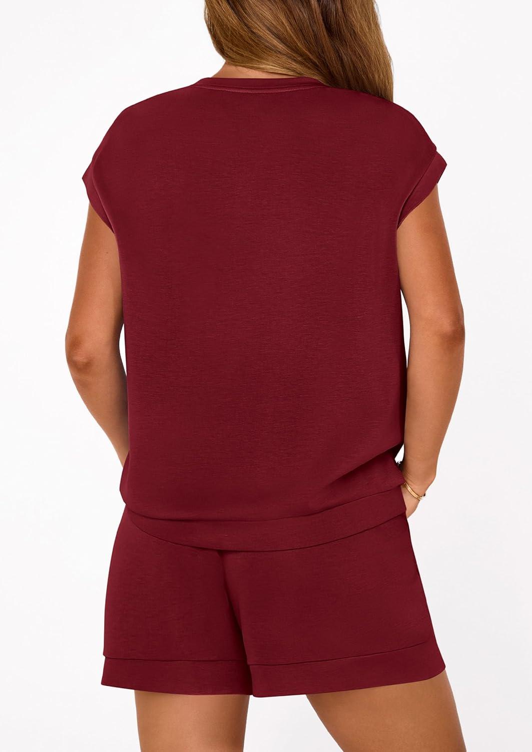 PRETTYGARDEN Women's 2 Piece Lounge Shorts Sets 2026 Summer Travel Outfits Casual Beach Vacation Clothes Spring Sweatsuits(Burgundy)