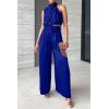 imagePRETTYGARDEN Womens 2 Piece Outfits 2024 Summer Casual Sleeveless Mock Neck Crop Tops Wide Leg Pants SetRoyal Blue
