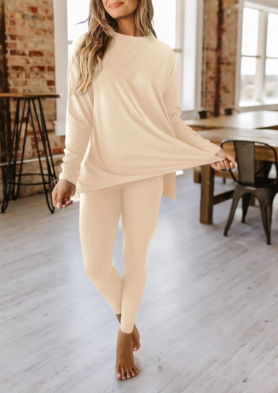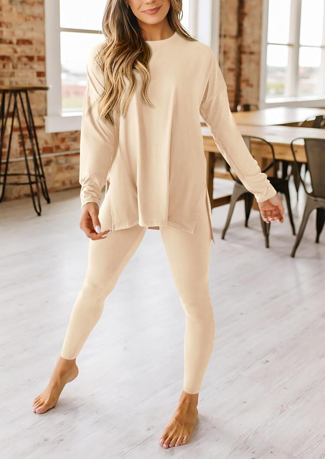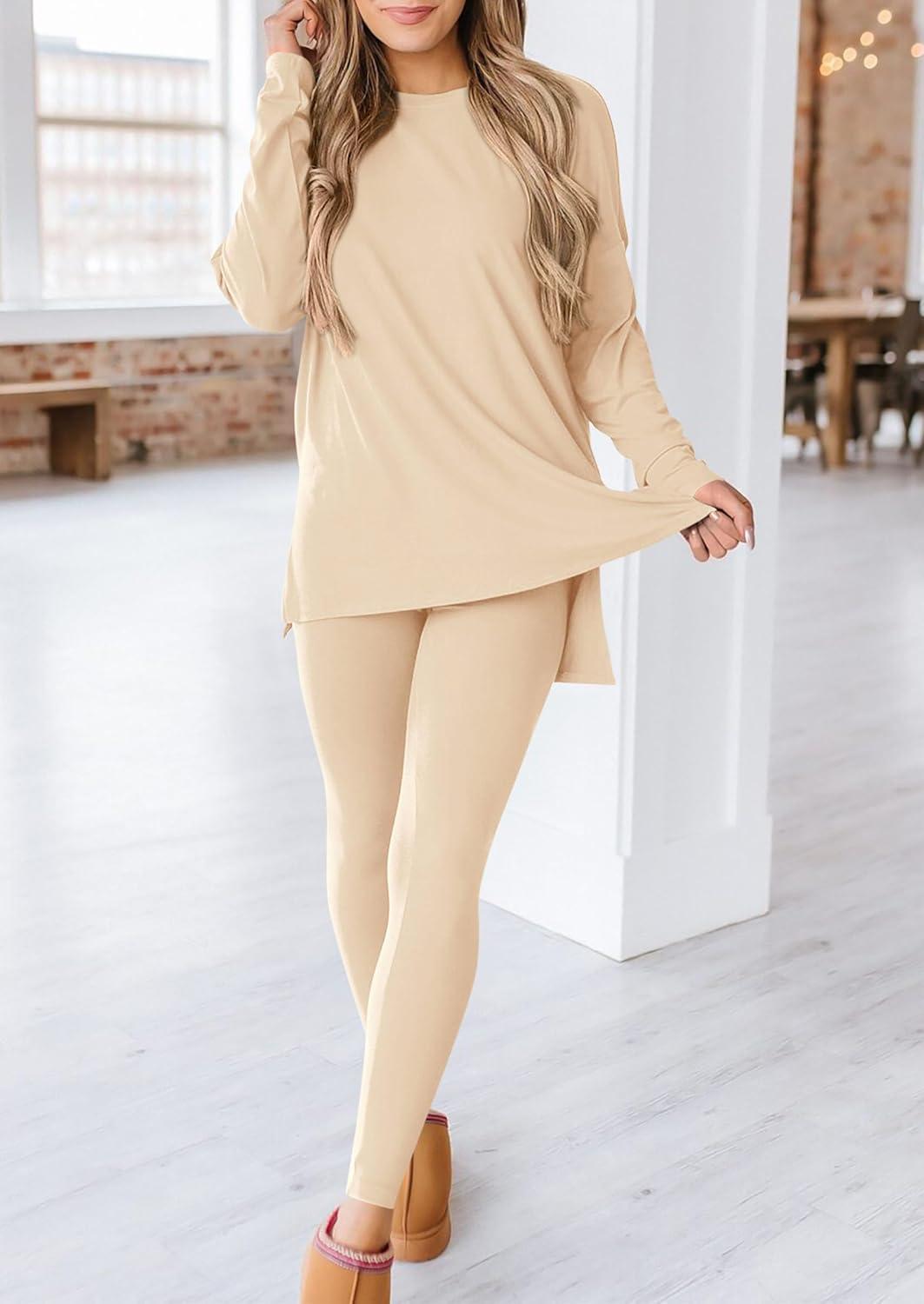 PRETTYGARDEN Women's 2 Piece Outfits 2025 Fall Casual Long Sleeve Tunic Tops Legging Pants Matching Lounge Sets Sweatsuits(Beige)