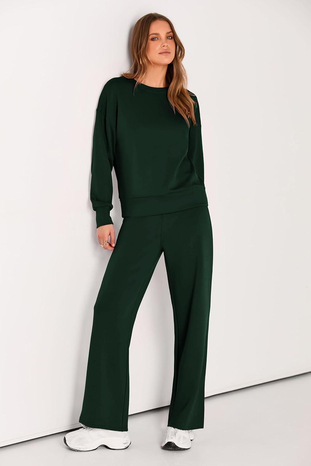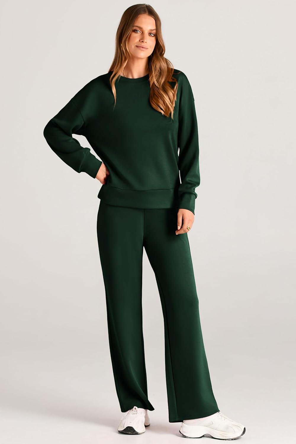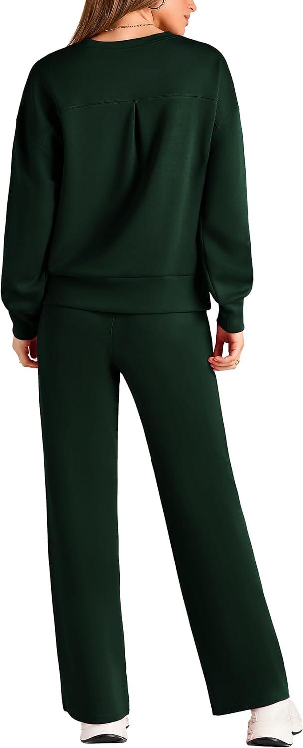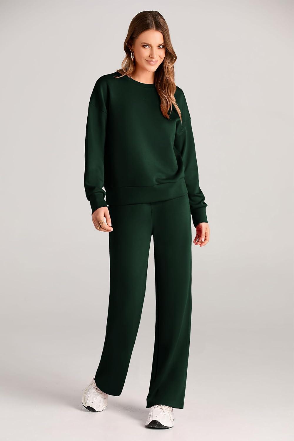 PRETTYGARDEN Womens 2 Piece Outfits 2025 Fall Long Sleeve Sweatshirt Wide Leg Pants Lounge Sets Winter Sweatsuits Tracksuit(Dark Green)