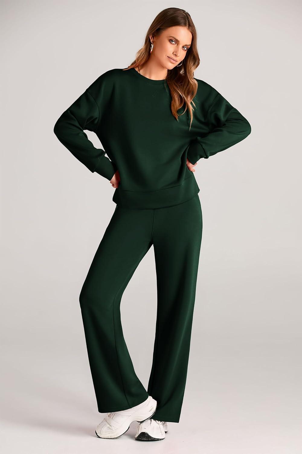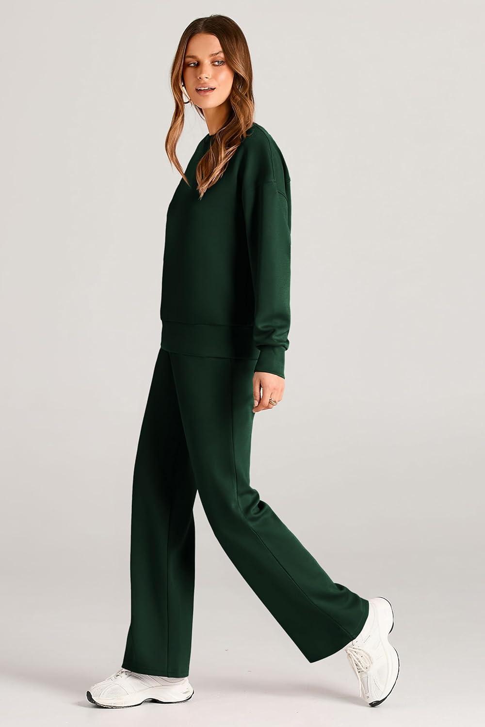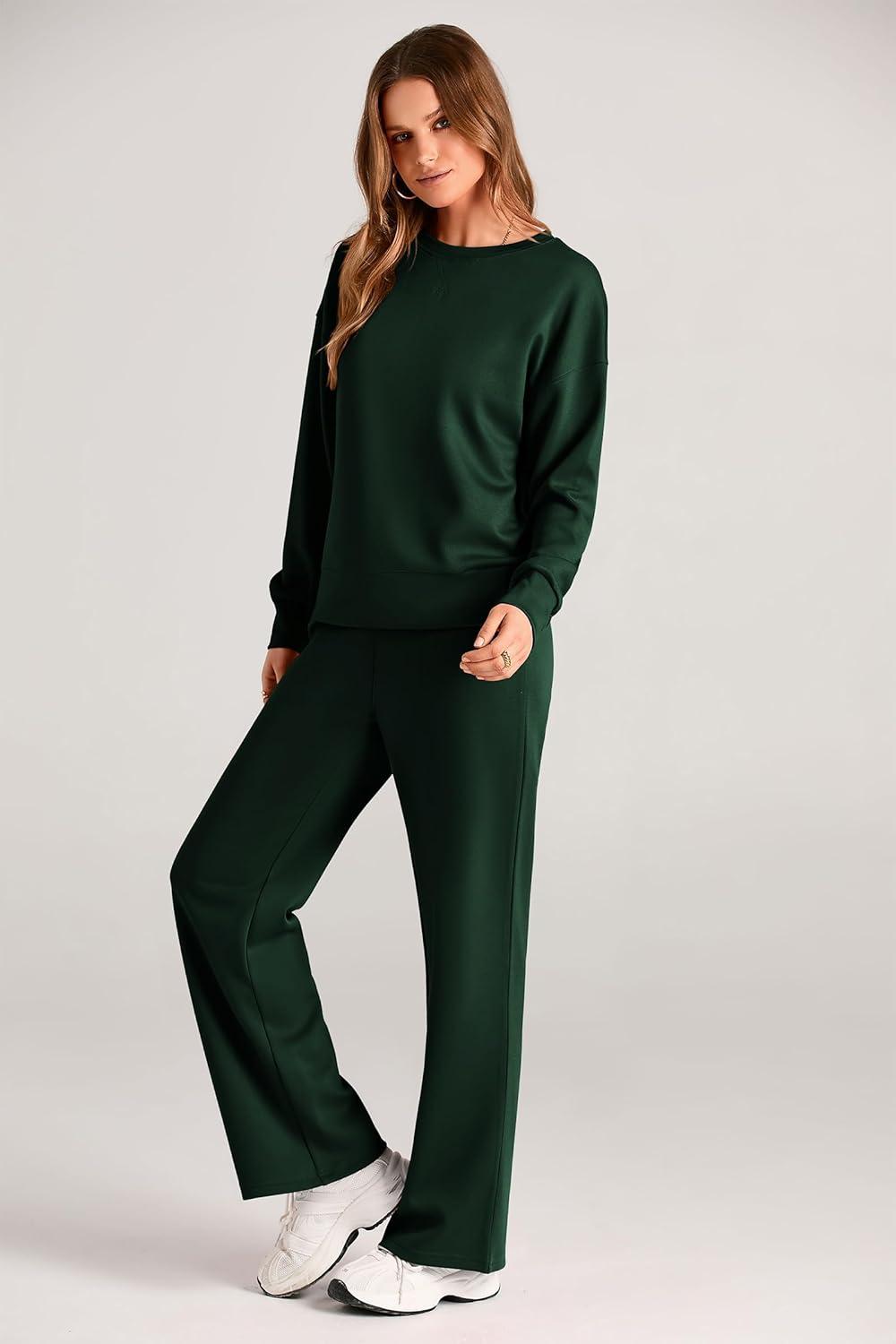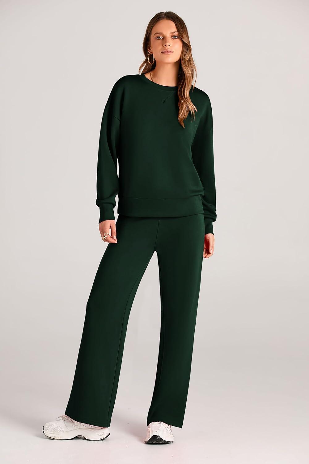 PRETTYGARDEN Womens 2 Piece Outfits 2025 Fall Long Sleeve Sweatshirt Wide Leg Pants Lounge Sets Winter Sweatsuits Tracksuit(Dark Green)