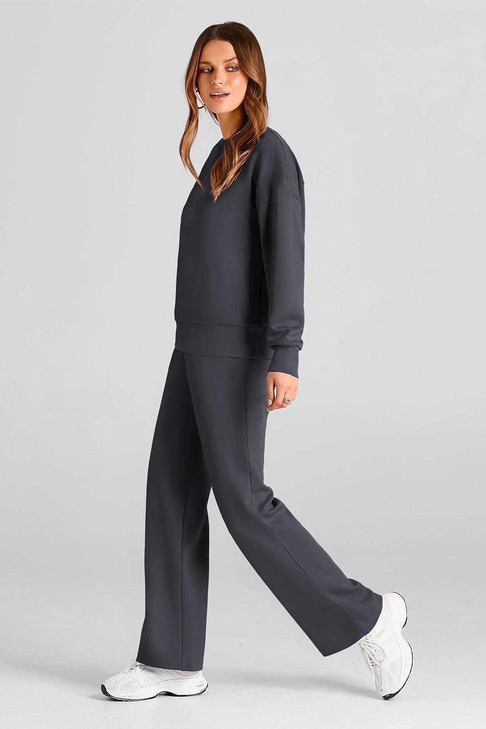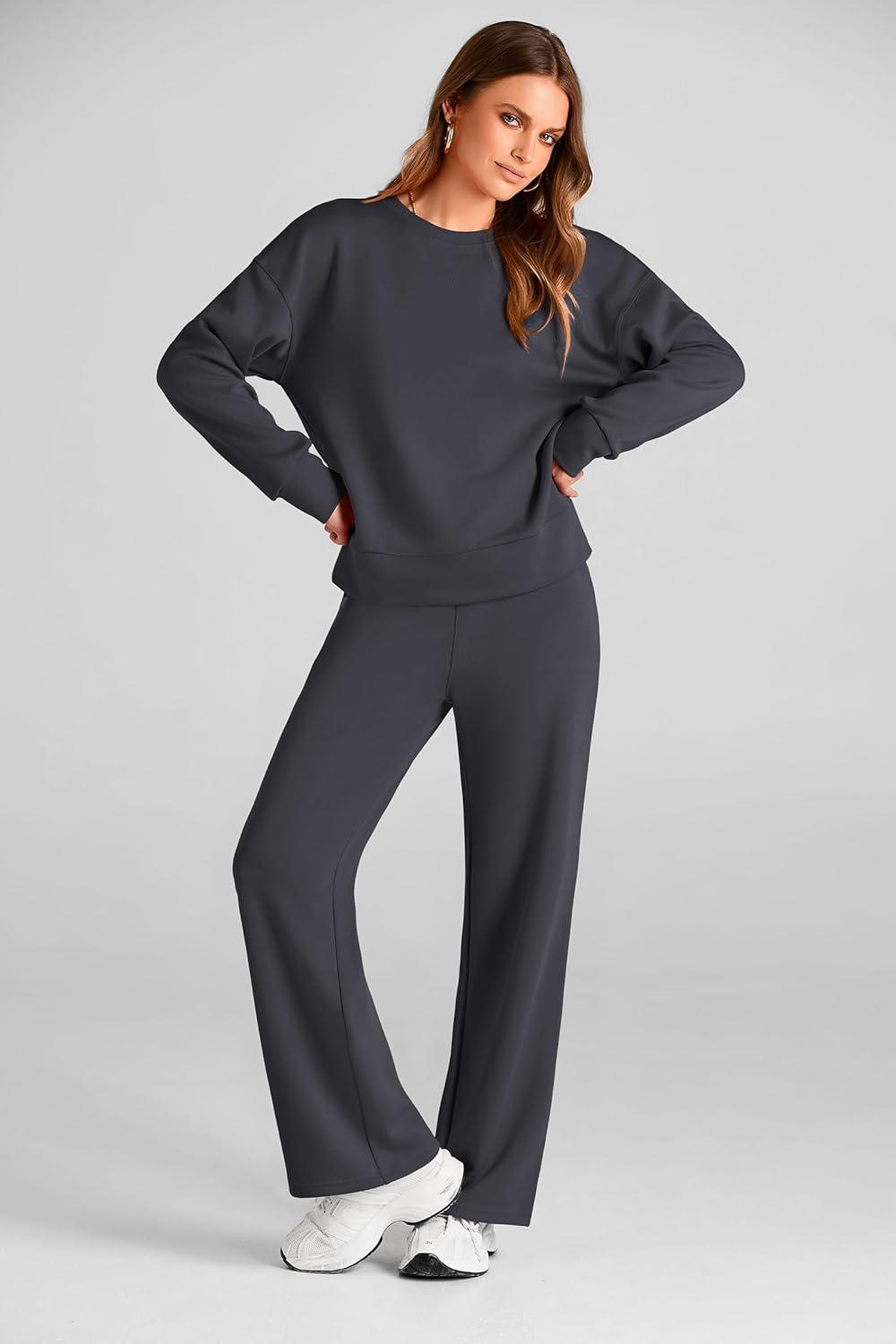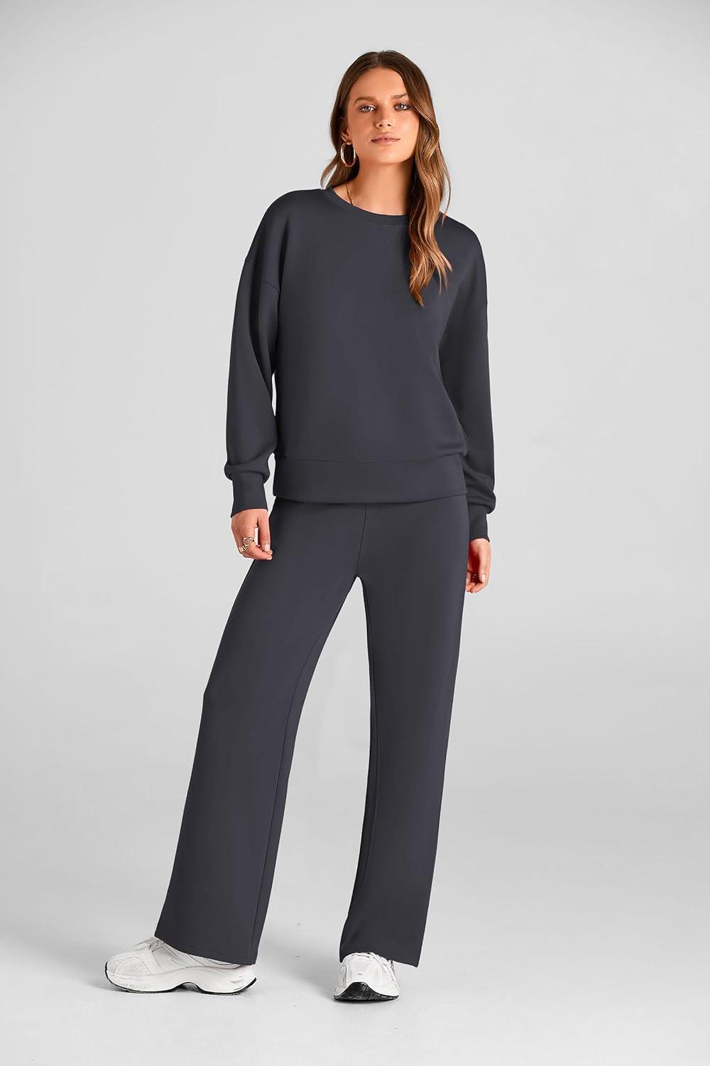 PRETTYGARDEN Womens 2 Piece Outfits 2025 Fall Long Sleeve Sweatshirt Wide Leg Pants Lounge Sets Winter Sweatsuits Tracksuit(Dark Grey)