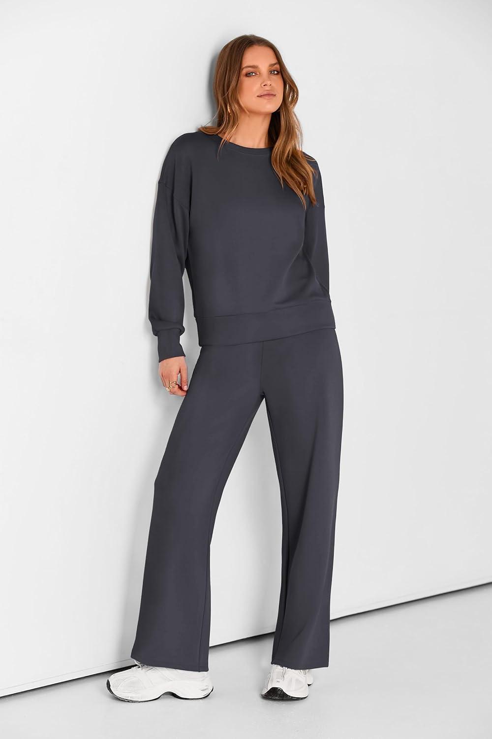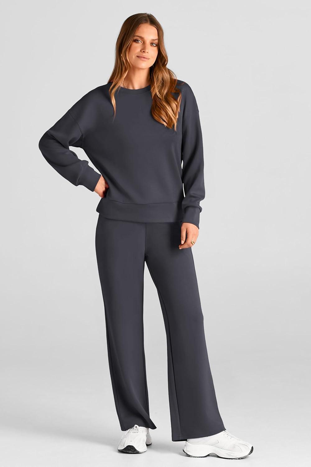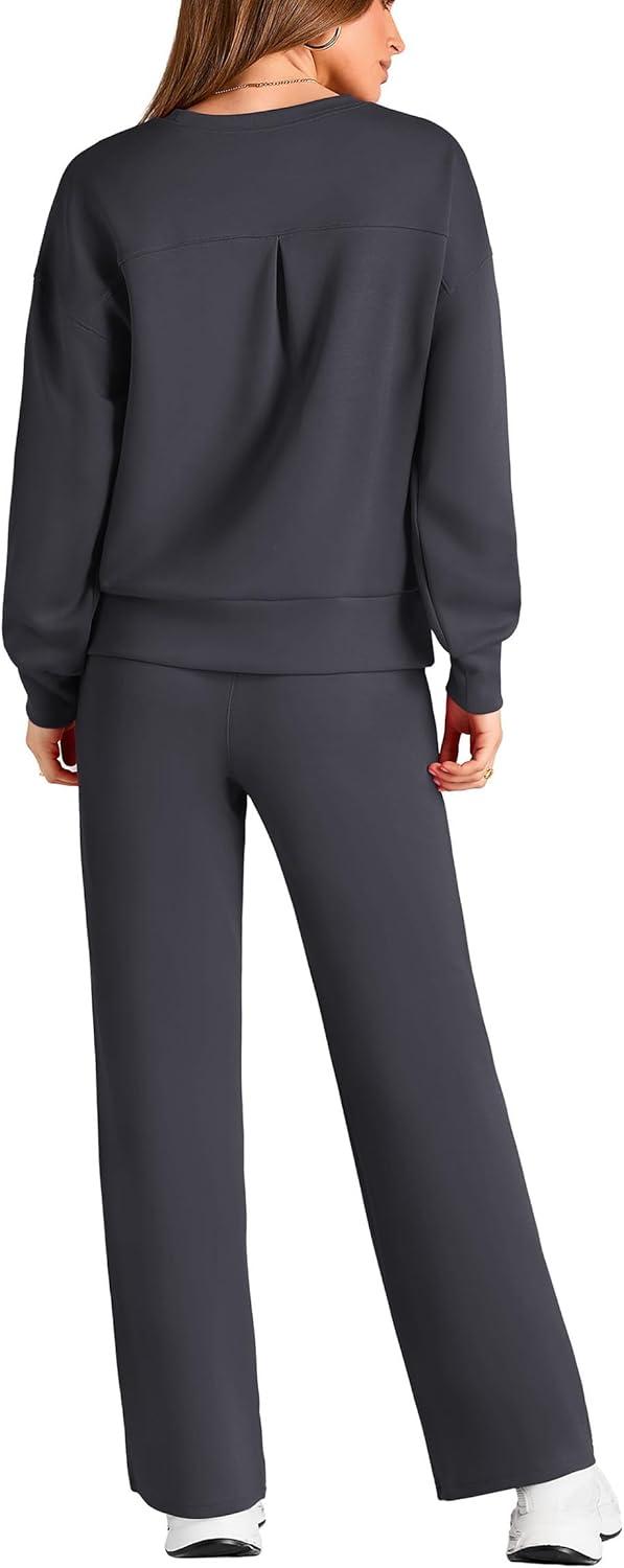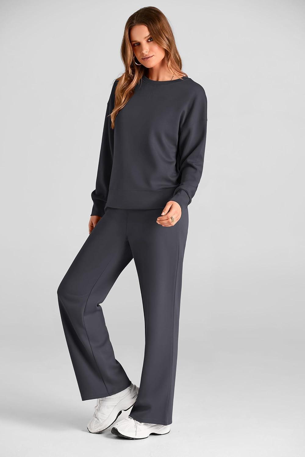 PRETTYGARDEN Womens 2 Piece Outfits 2025 Fall Long Sleeve Sweatshirt Wide Leg Pants Lounge Sets Winter Sweatsuits Tracksuit(Dark Grey)