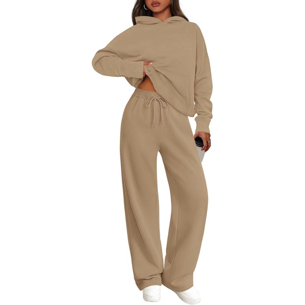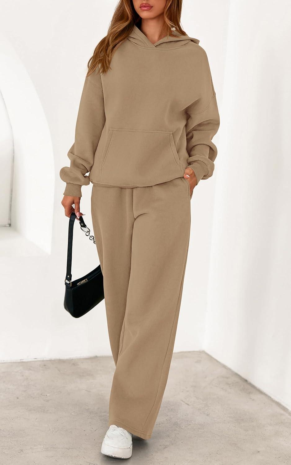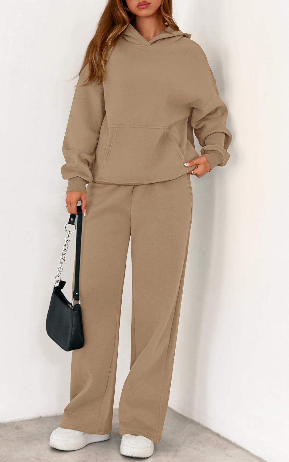PRETTYGARDEN Women’s 2 Piece Outfits Fall Sweatsuits Oversized Hoodies Wide Leg Sweatpants Tracksuits Lounge Matching Sets(Khaki)