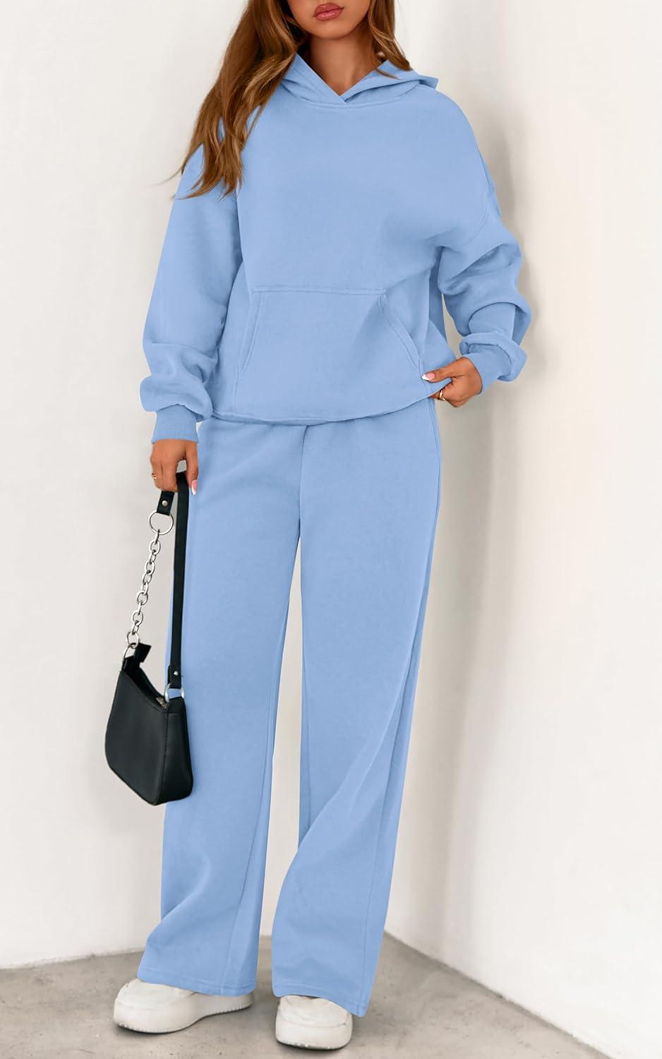 PRETTYGARDEN Women’s 2 Piece Outfits Fall Sweatsuits Oversized Hoodies Wide Leg Sweatpants Tracksuits Lounge Matching Sets(Light Blue)