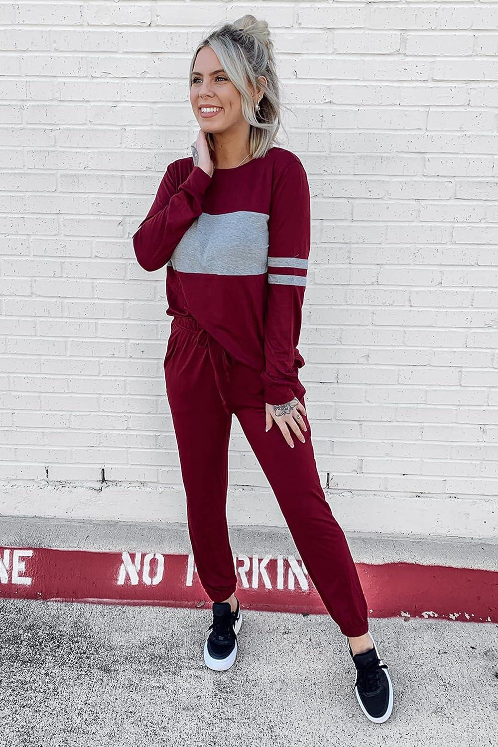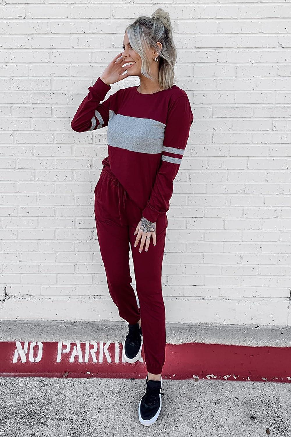 PRETTYGARDEN Womens 2 Piece Sets 2025 Long Sleeve Tops High Waisted Sweatpants Lounge Set Fall Fashion Travel Outfits(Wine Red)