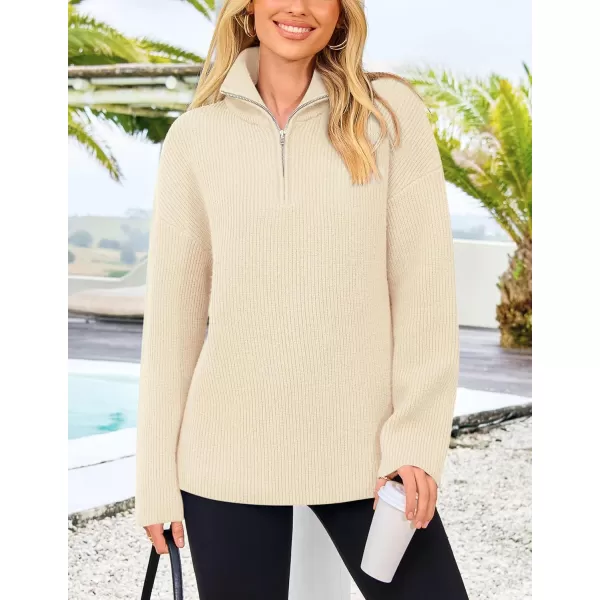 PRETTYGARDEN Women's 2024 Fall Chunky Knit Sweaters Long Sleeve Collared Quarter Zip Pullover Jumper Tops(Beige)