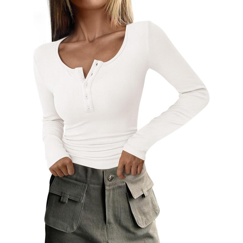 Get the PRETTYGARDEN Women’s 2024 Fall Long Sleeve Henley T Shirts Button Ribbed Knit Slim Fit Casual Basic Tops Blouse(Beige White) you want at a discounted price during our markdown sale event.