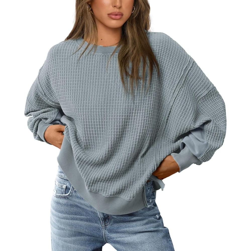 Get your hands on our newest PRETTYGARDEN Women’s 2024 Fall Oversized Crewneck Sweatshirts Casual Long Sleeve Pullover Waffle Knit Shirts Top(Light Grey Blue) and enjoy a limited-time discount offer.