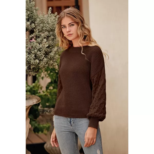 imagePRETTYGARDEN Womens 2024 Winter Pullover Sweater Casual Long Sleeve Crewneck Loose Chunky Knit Jumper Tops BlouseCoffee