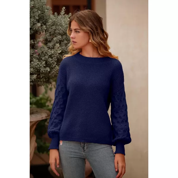 PRETTYGARDEN Women's 2024 Winter Pullover Sweater Casual Long Sleeve Crewneck Loose Chunky Knit Jumper Tops Blouse(Navy)
