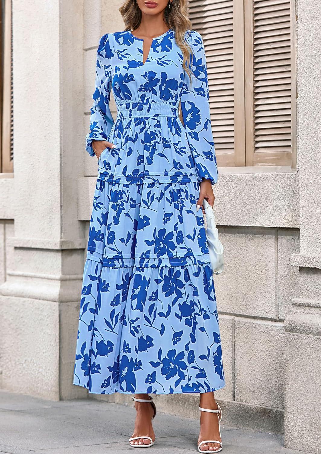 Get the PRETTYGARDEN Women’s 2025 Fall Boho Maxi Dresses Floral Long Sleeve V Neck Flowy Elegant Wedding Guest Dress Vacation Outfits(Sky Blue) you want at a price you can afford with our markdown sale.