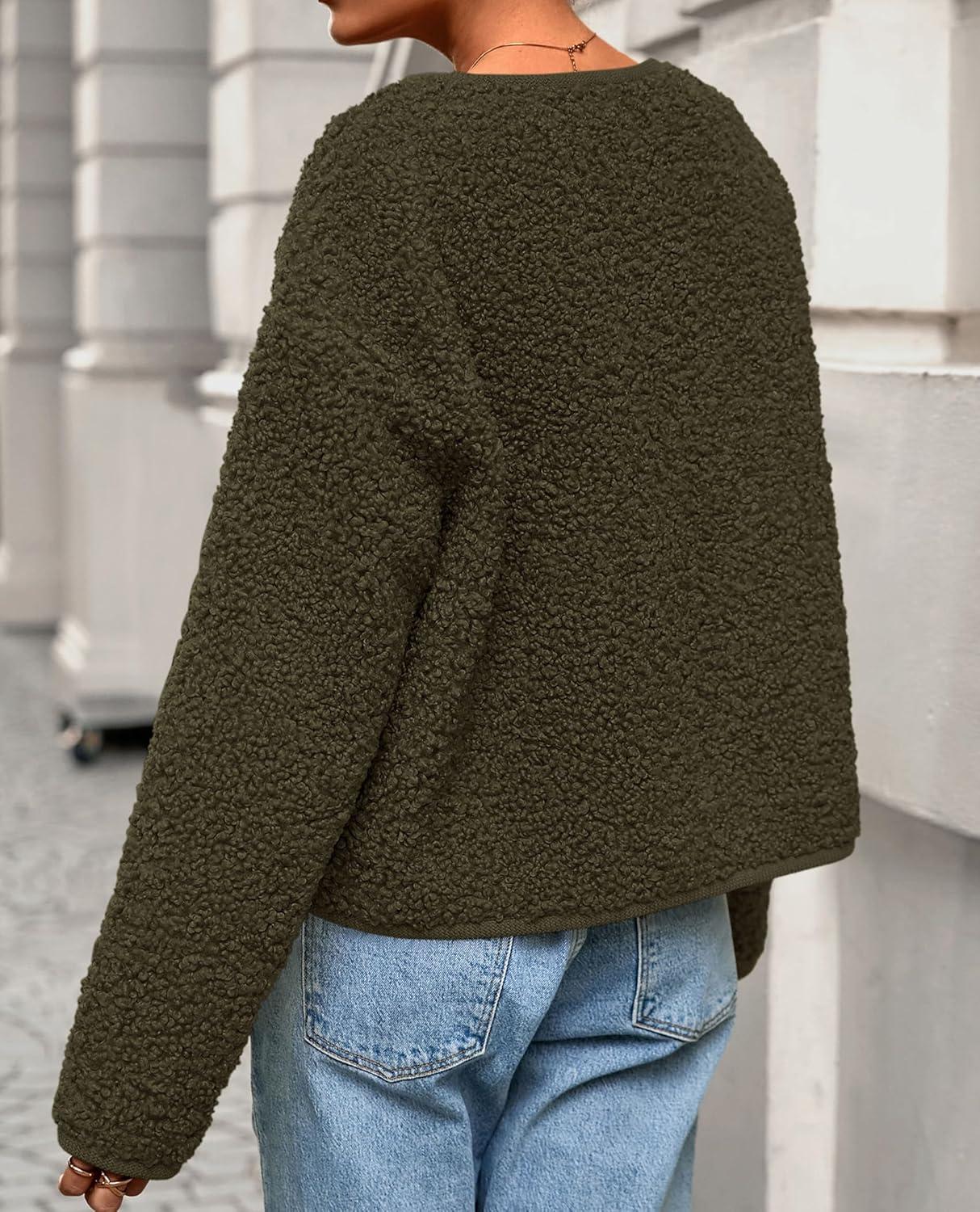 PRETTYGARDEN Women’s 2025 Fall Fashion Clothes Trendy Fleece Sherpa Cropped Jackets Buttons Warm Casual Winter Faux Fur Coats(Army Green)