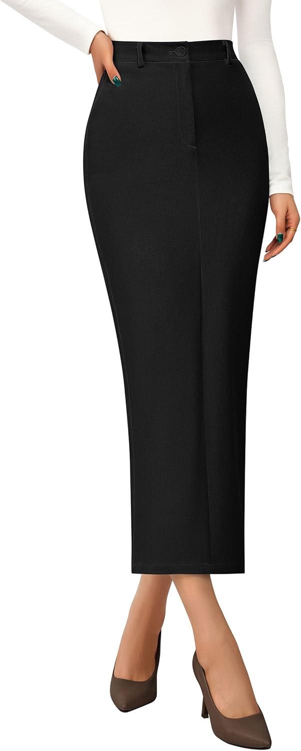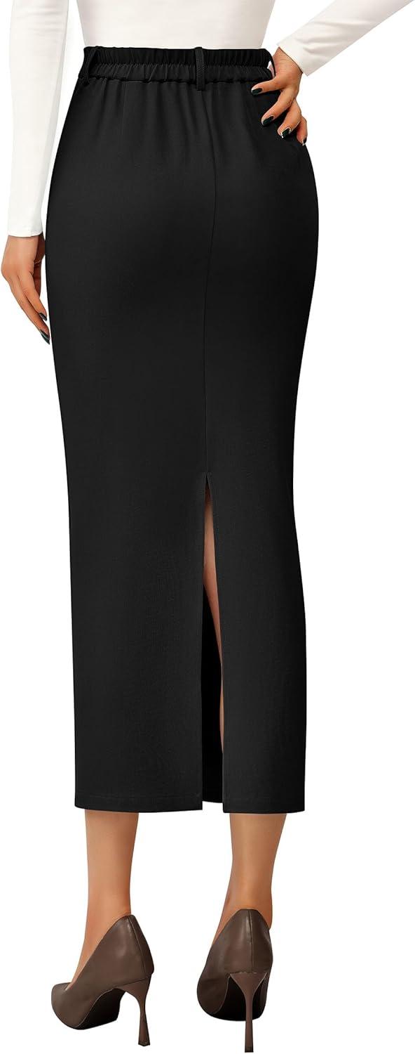 PRETTYGARDEN Women’s 2025 Fall Maxi Pencil Skirt High Waisted Slit Work Office Trendy Long Skirts Business Casual Outfits(Black)