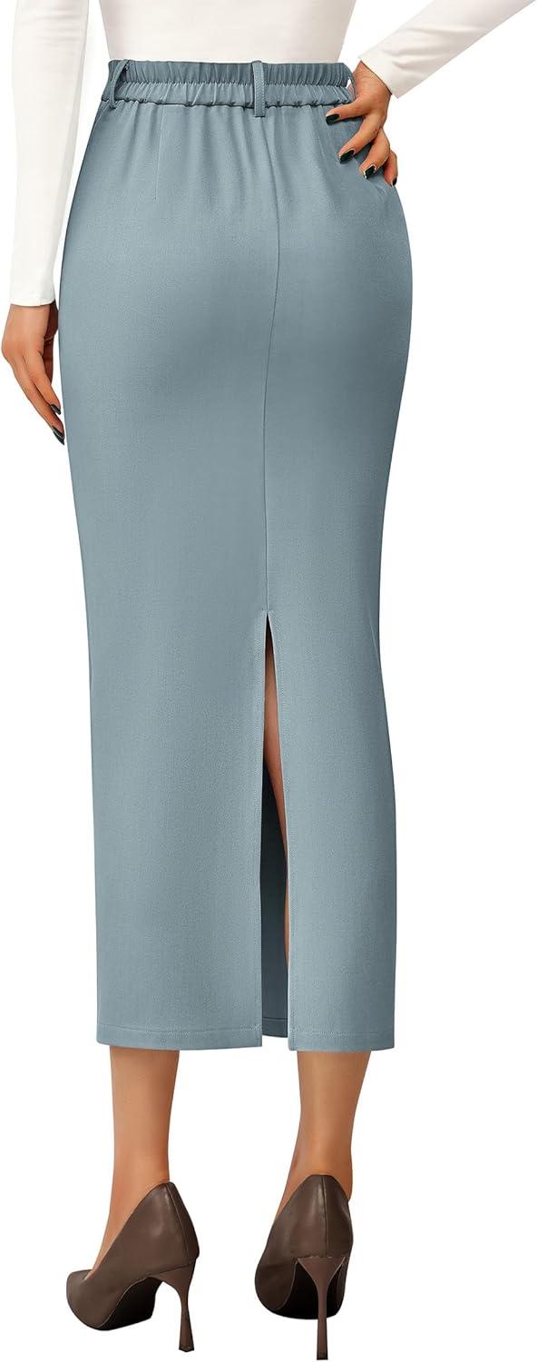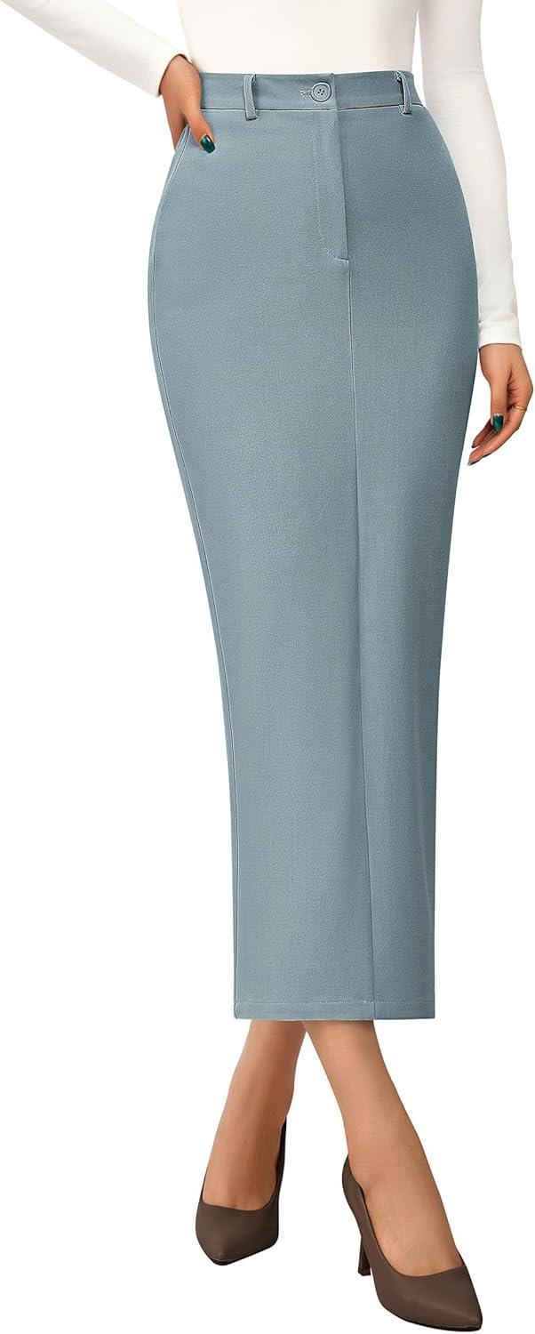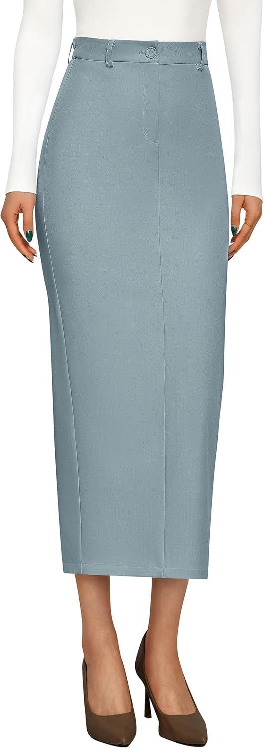 PRETTYGARDEN Women's 2025 Fall Maxi Pencil Skirt High Waisted Slit Work Office Trendy Long Skirts Business Casual Outfits(Light Blue)