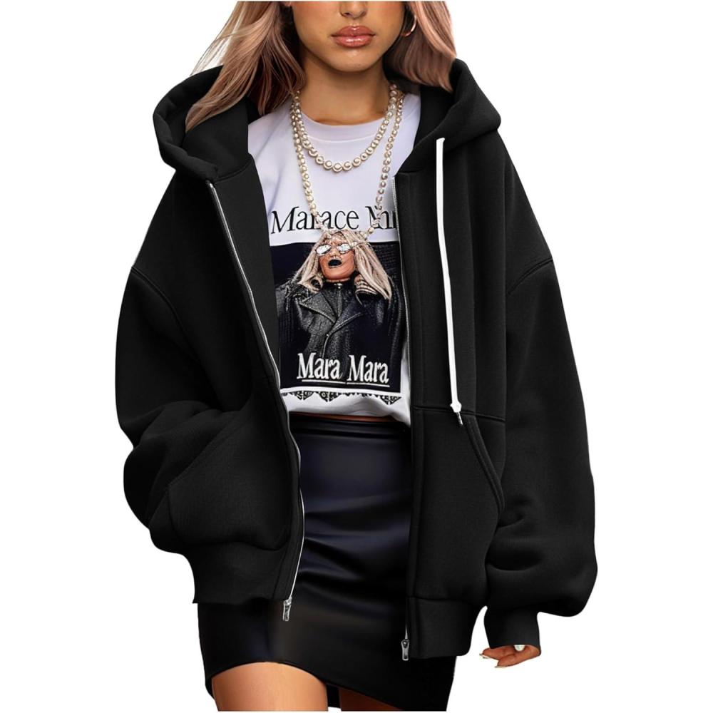 PRETTYGARDEN Women’s 2025 Fall Oversized Hoodies Sweatshirt Long Sleeve Zip Up Pockets Loose Fit Y2K Winter Jackets Coat(Black)
