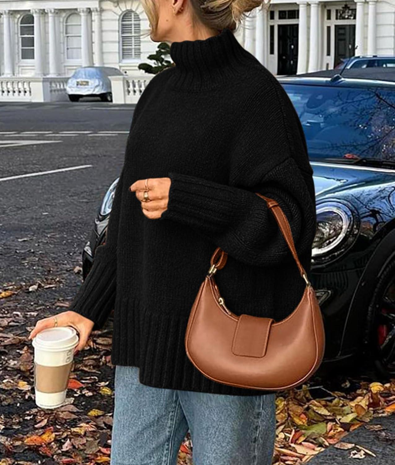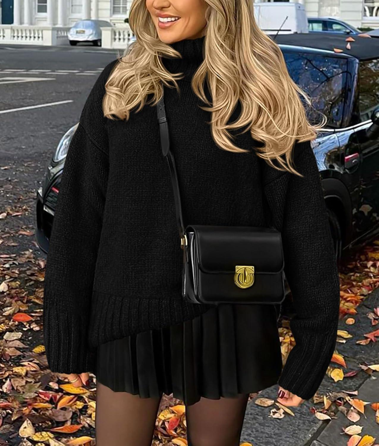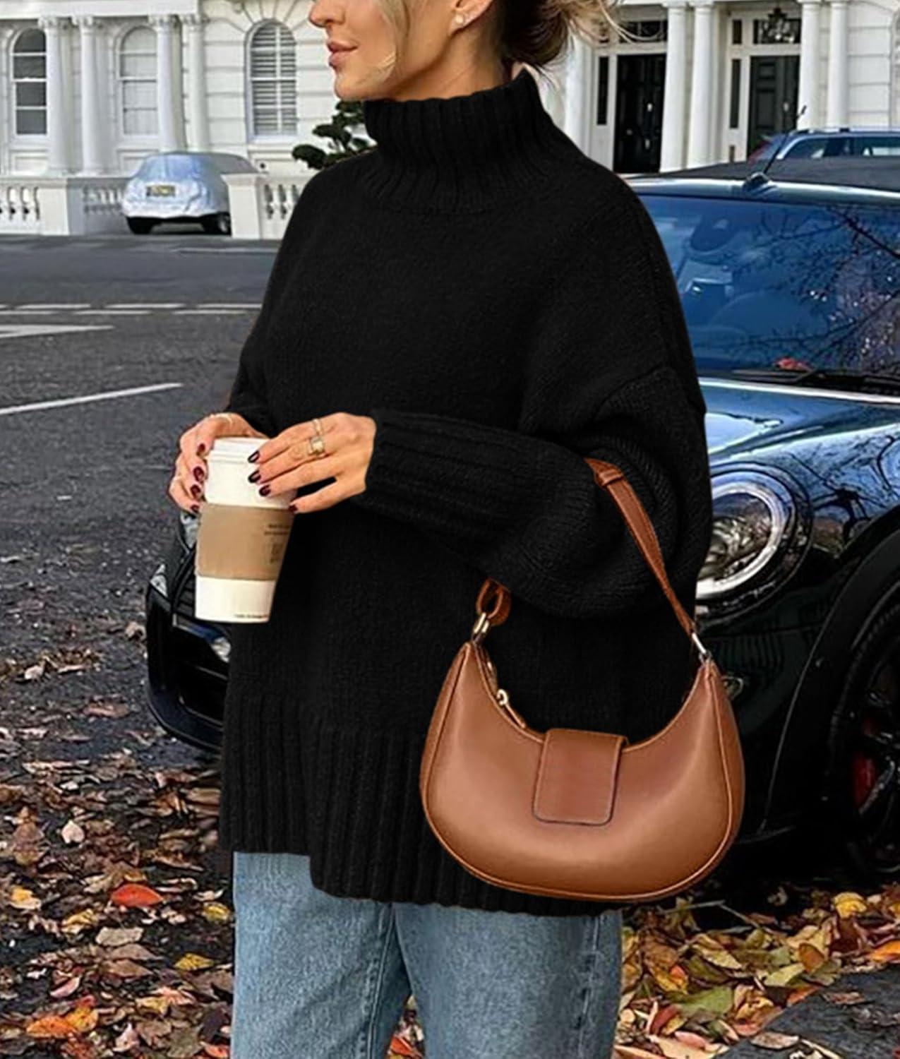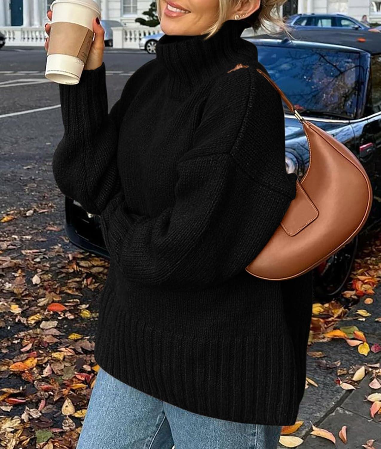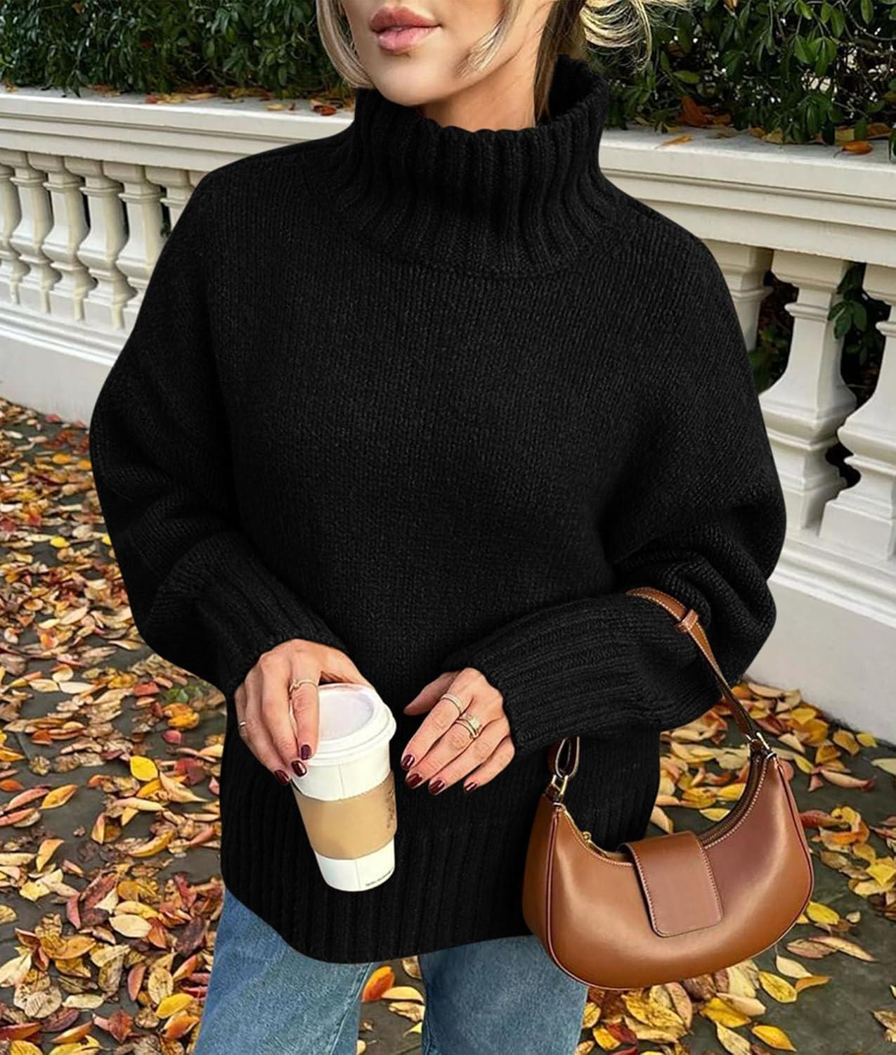 PRETTYGARDEN Women's 2025 Fall Oversized Sweaters Turtleneck Casual Long Sleeve Chunky Knit Pullover Tops Winter Clothes(Black)
