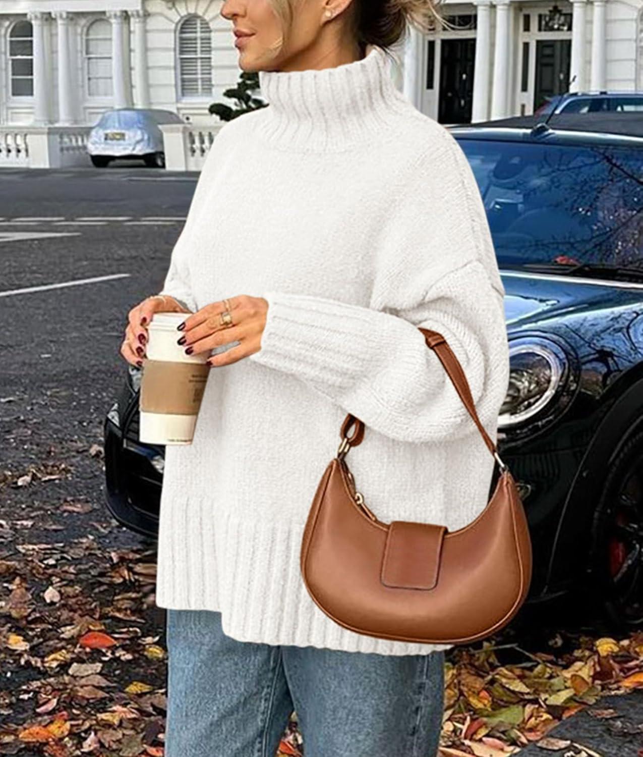 PRETTYGARDEN Women’s 2025 Fall Oversized Sweaters Turtleneck Casual Long Sleeve Chunky Knit Pullover Tops Winter Clothes(White)