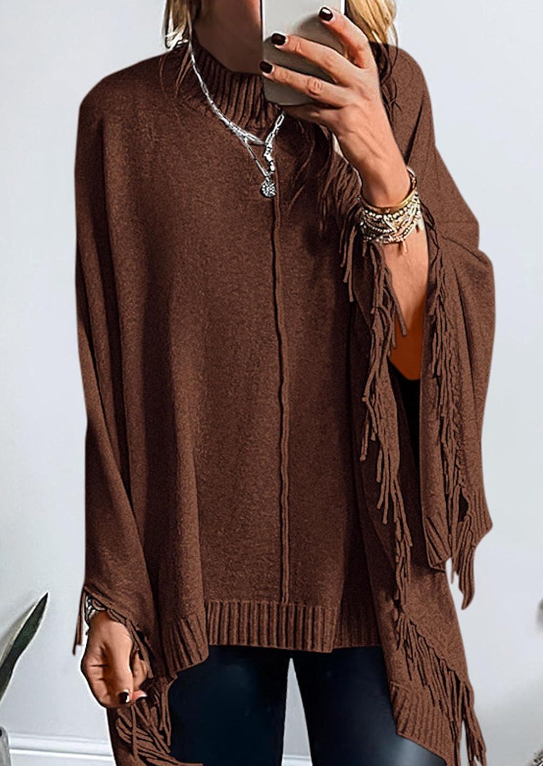 imagePRETTYGARDEN Womens 2025 Fall Winter Poncho Sweaters Trendy Chunky Knit Fringe Shawls Wraps Pullover Tops Holiday OutfitsBrown