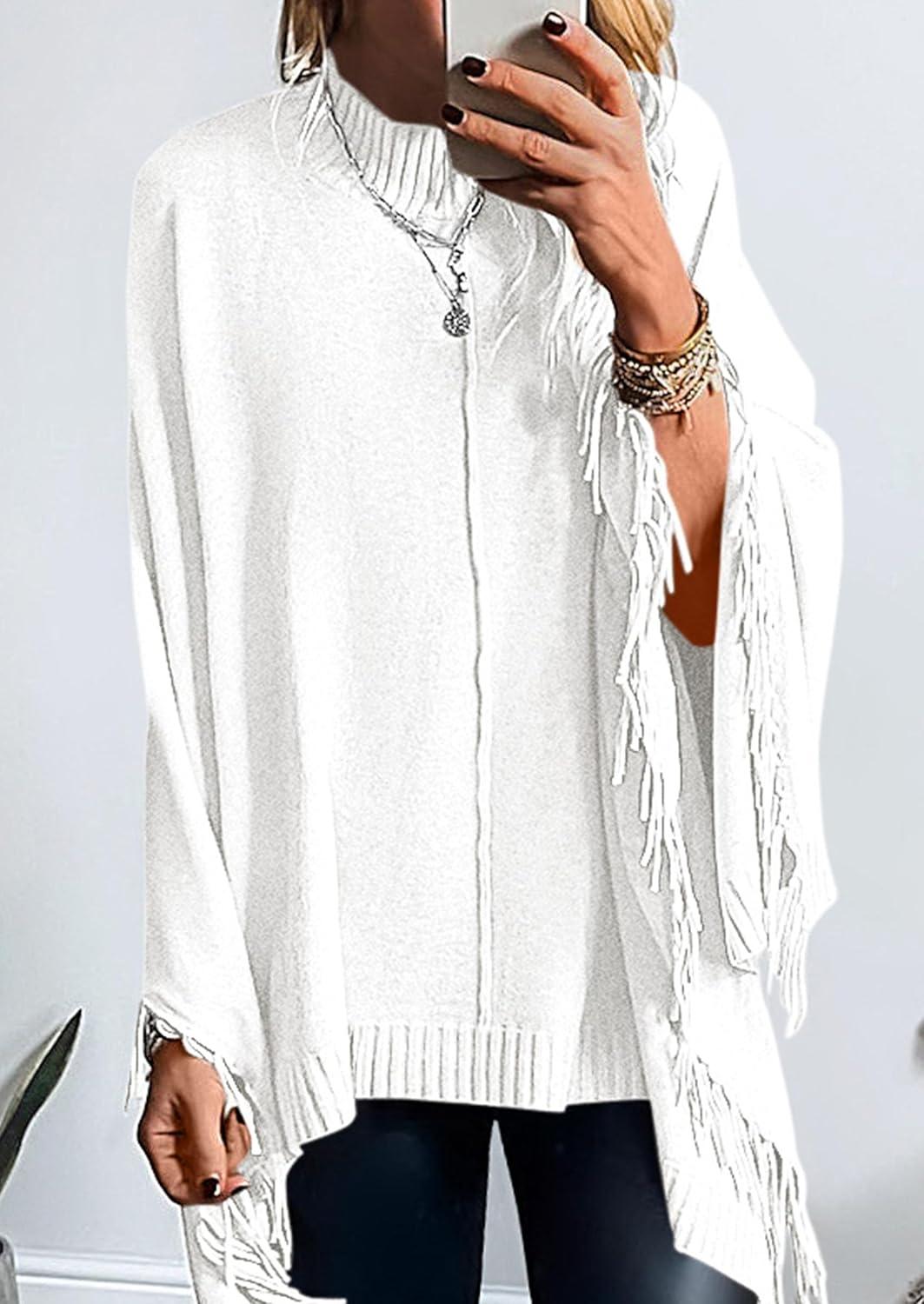 imagePRETTYGARDEN Womens 2025 Fall Winter Poncho Sweaters Trendy Chunky Knit Fringe Shawls Wraps Pullover Tops Holiday OutfitsWhite