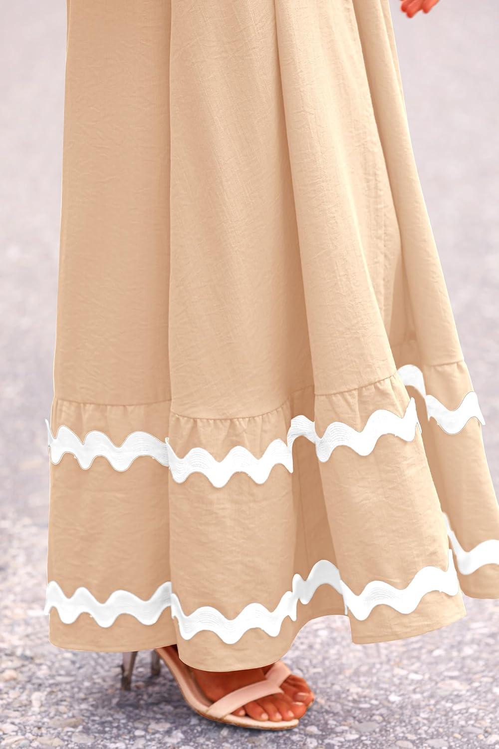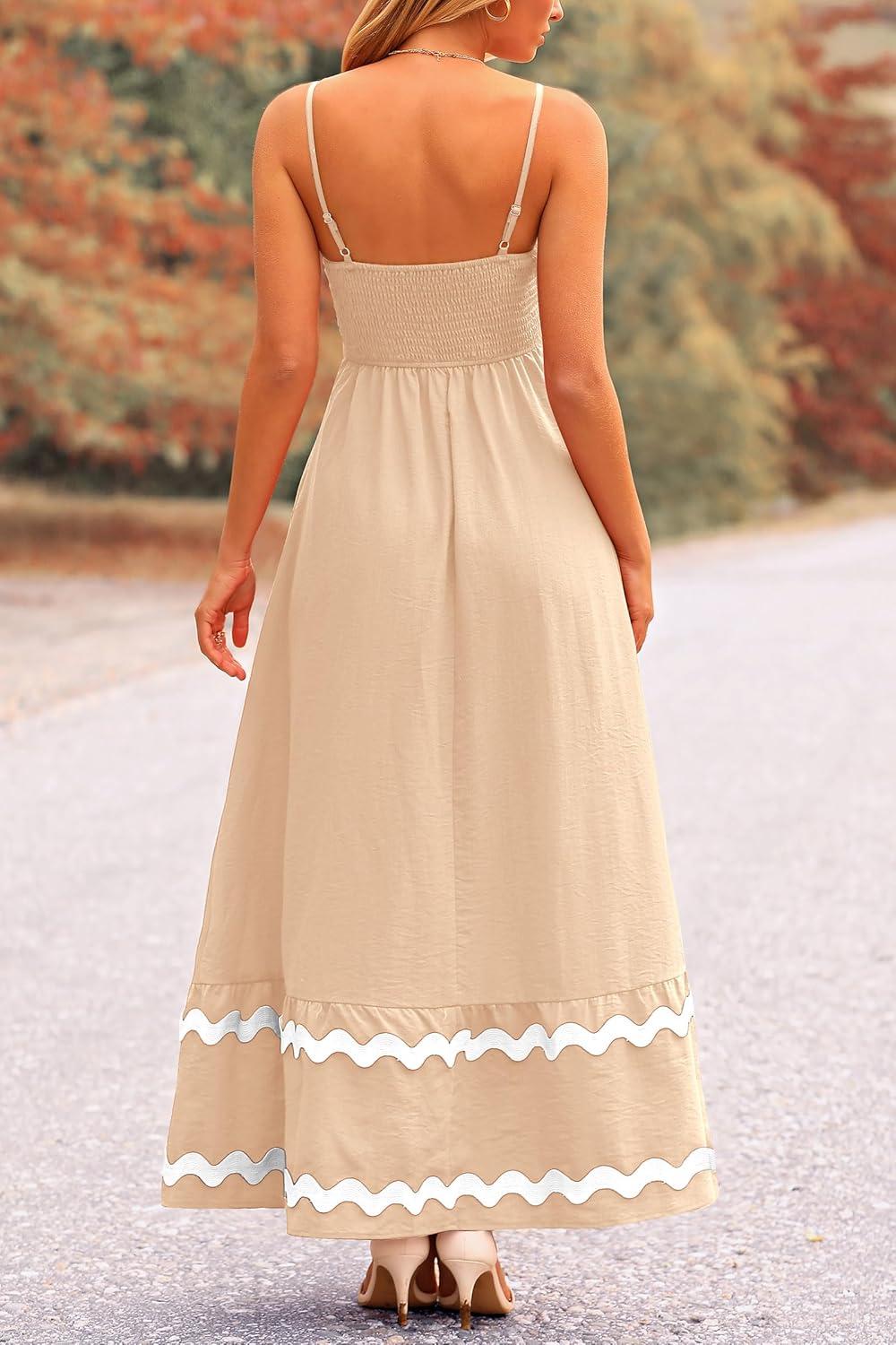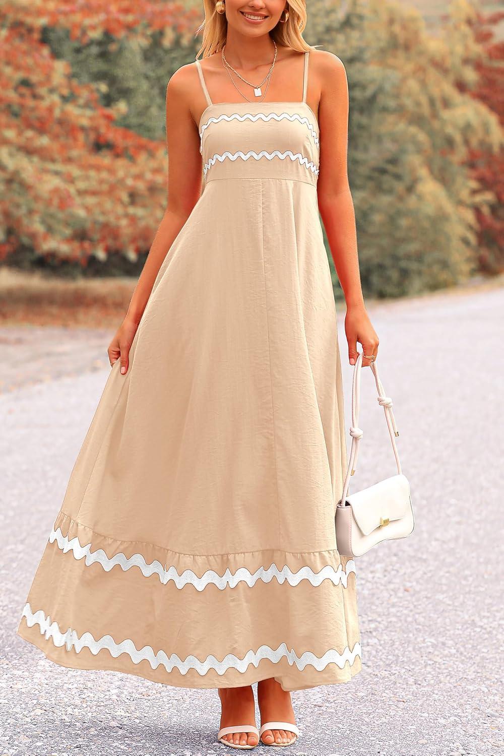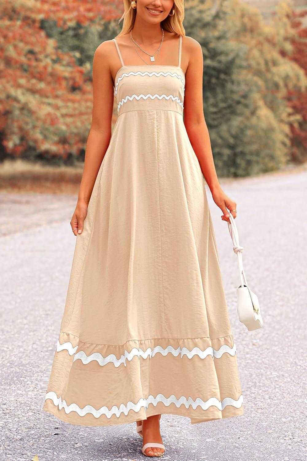 PRETTYGARDEN Women’s 2025 Summer Flowy Maxi Dress Casual Sleeveless Spaghetti Strap Ruffle Beach Long Dresses(Beige)