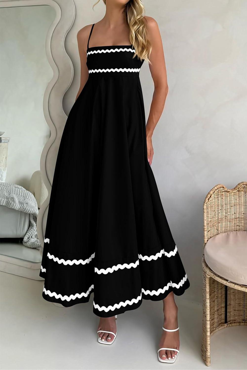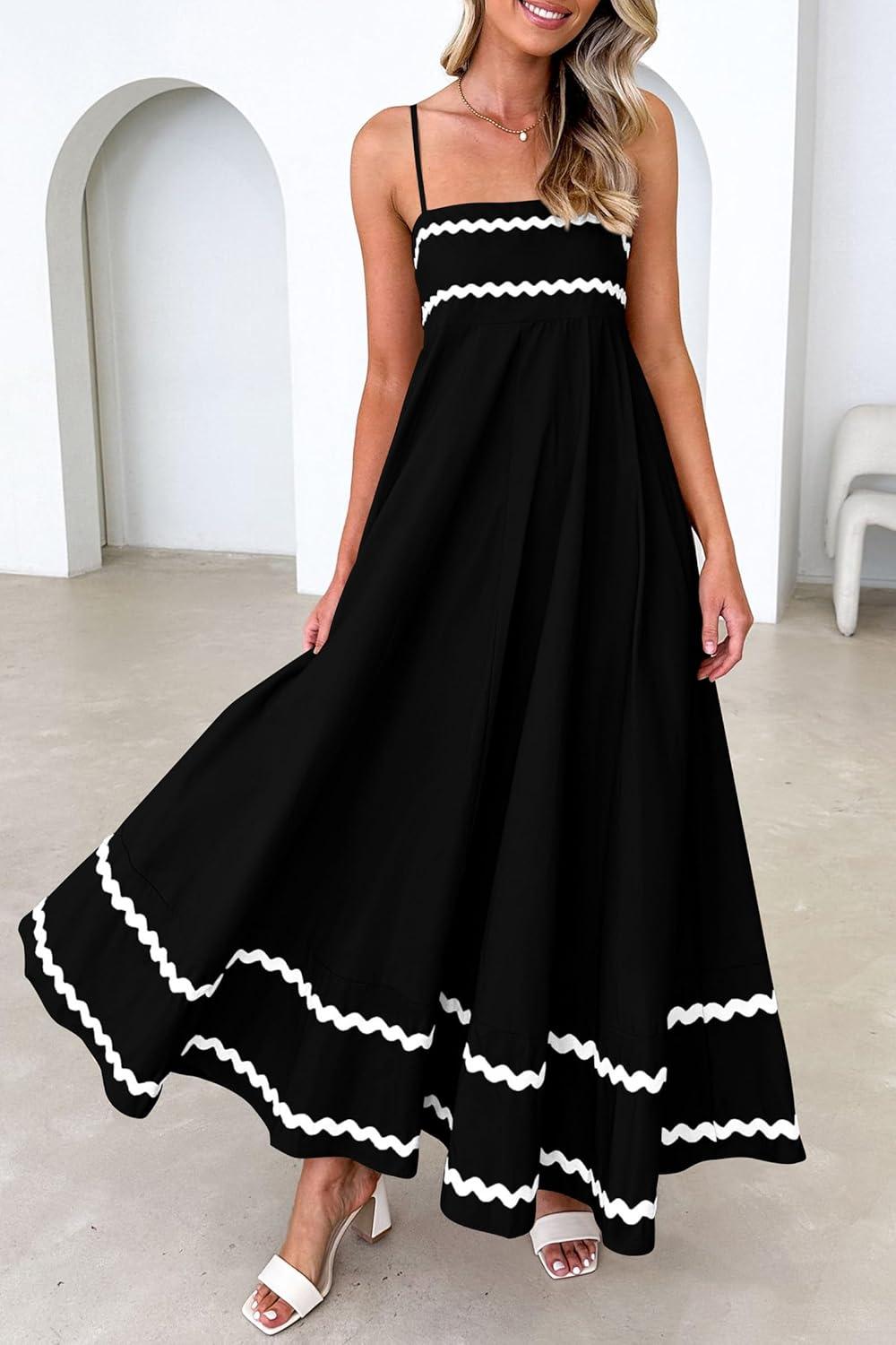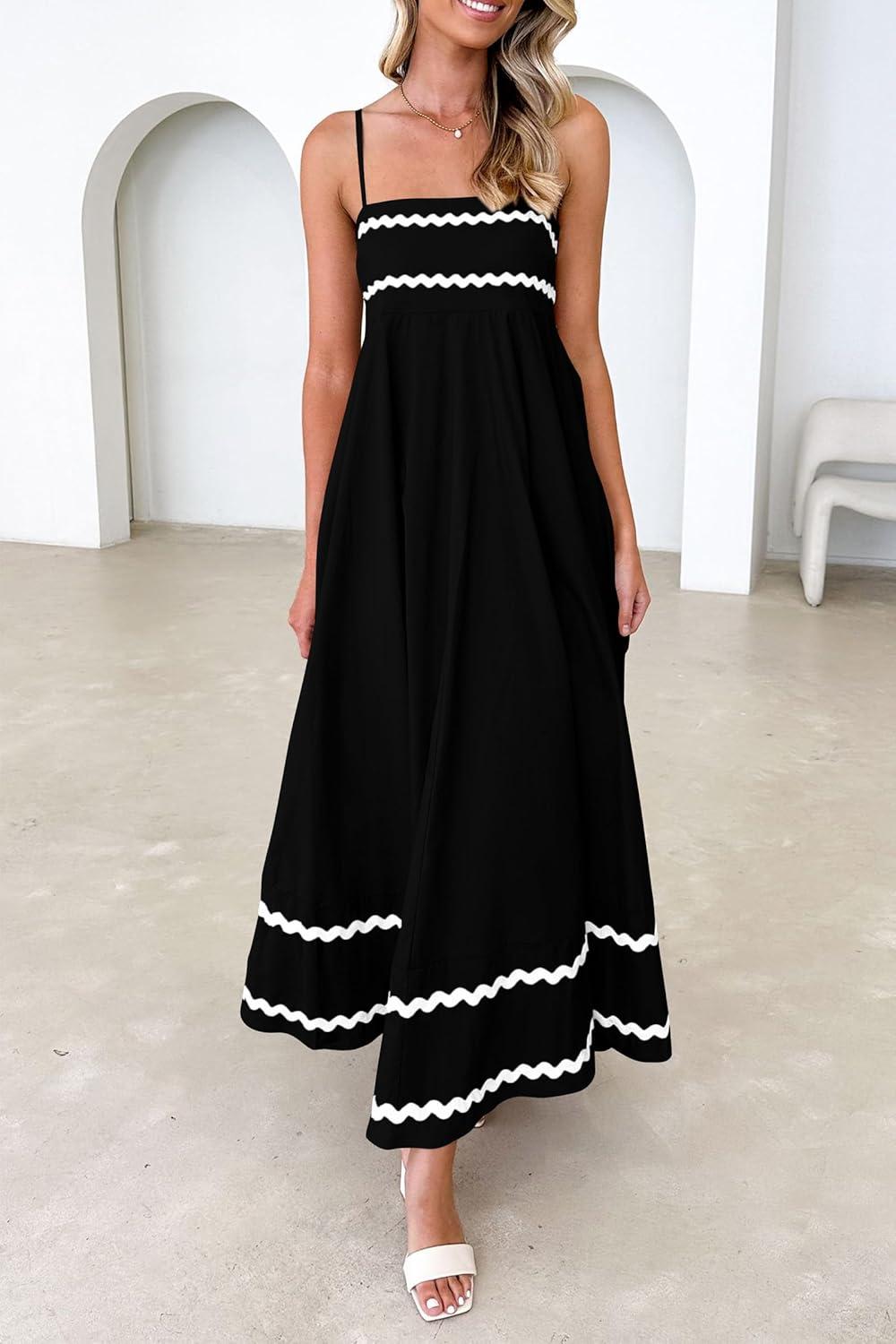 PRETTYGARDEN Women’s 2025 Summer Flowy Maxi Dress Casual Sleeveless Spaghetti Strap Ruffle Beach Long Dresses(Black)
