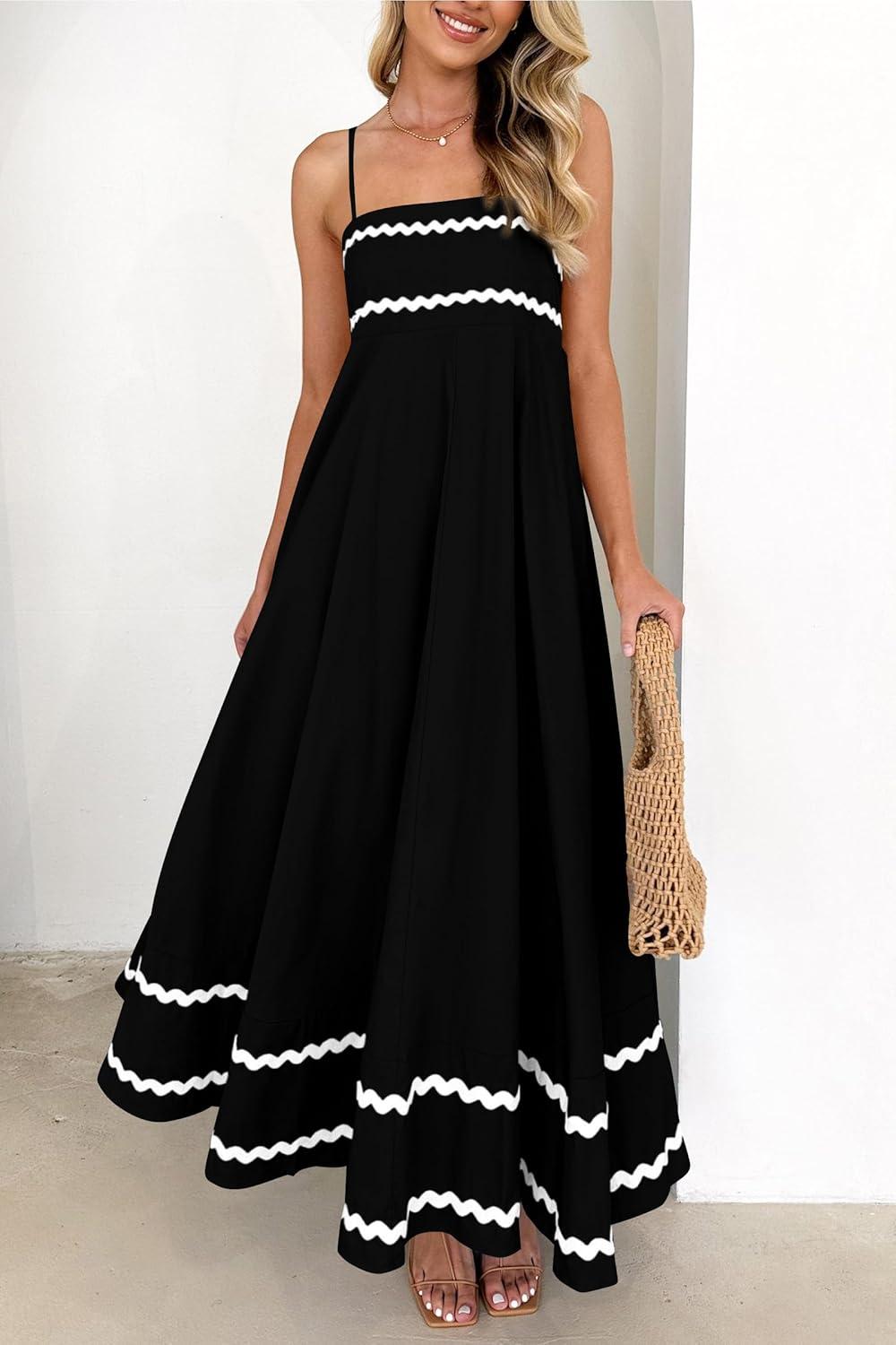 PRETTYGARDEN Women's 2025 Summer Flowy Maxi Dress Casual Sleeveless Spaghetti Strap Ruffle Beach Long Dresses(Black)