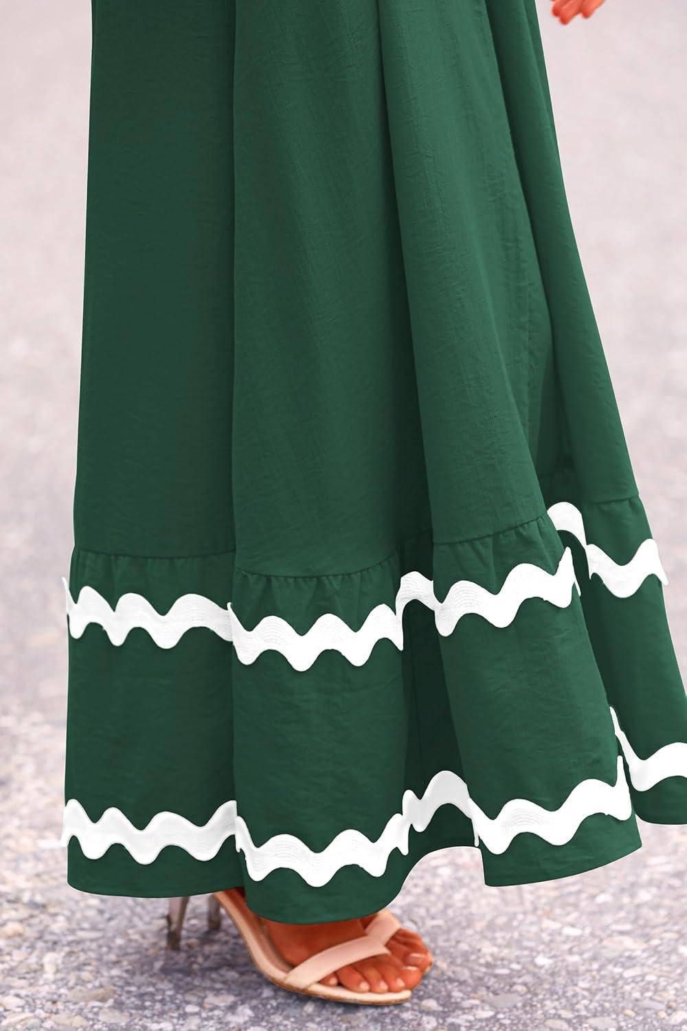 PRETTYGARDEN Women's 2025 Summer Flowy Maxi Dress Casual Sleeveless Spaghetti Strap Ruffle Beach Long Dresses(Dark Green)