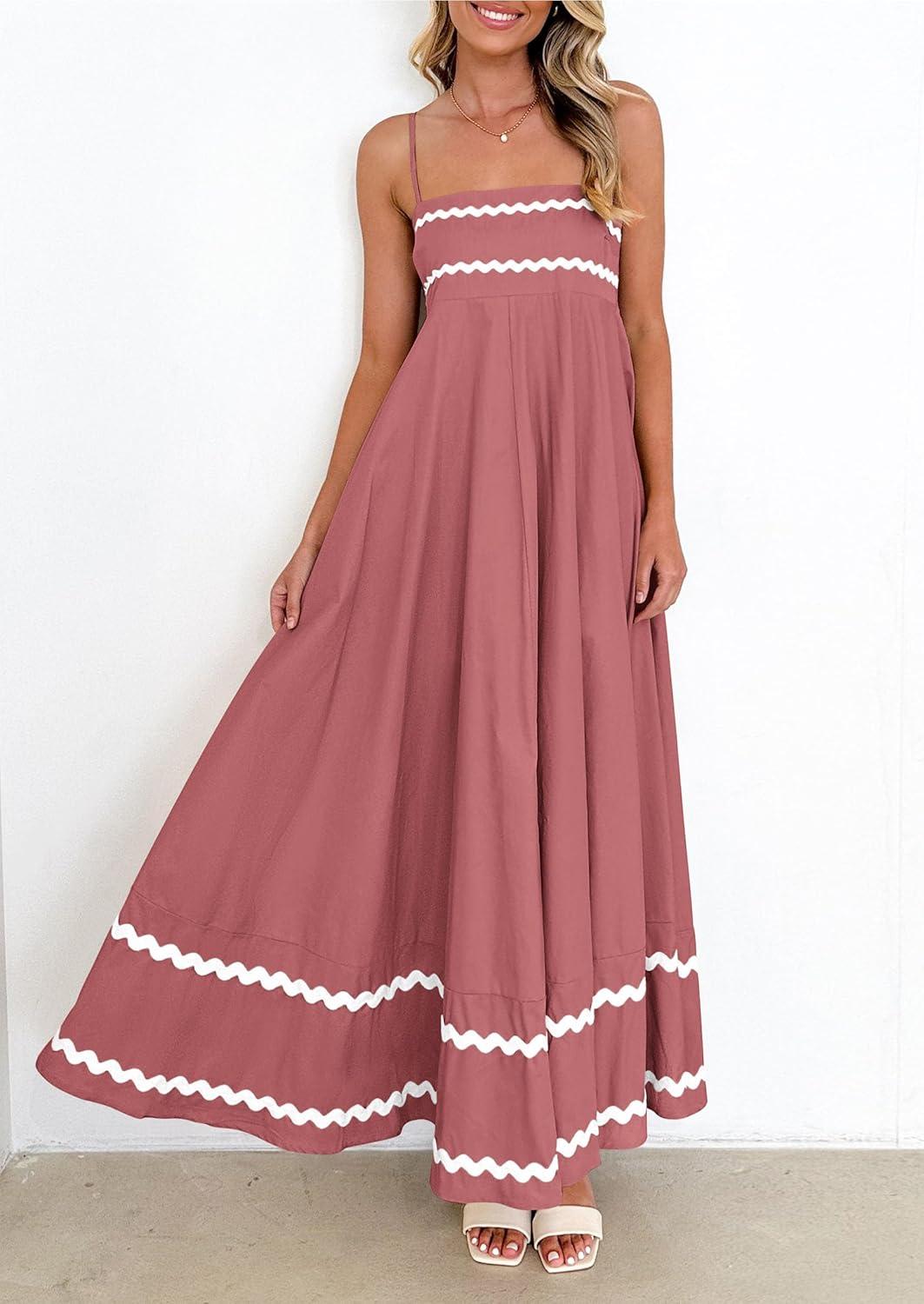 PRETTYGARDEN Women’s 2025 Summer Flowy Maxi Dress Casual Sleeveless Spaghetti Strap Ruffle Beach Long Dresses(Dark Pink)